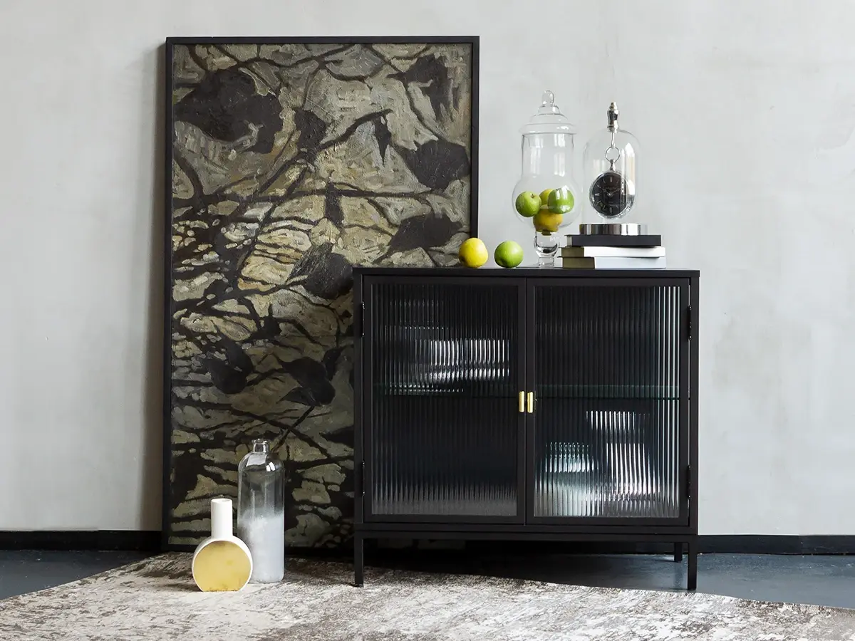 Концепция дизайна серванта The One — игра противоположностей с эклектической основой. Каркас из алюминиевого профиля контрастирует со стеклянной поверхностью. Этот союз материалов придаёт традиционному предмету мебели свежий и небанальный внешний вид. Взаимодействие стильных противоречий также выражено в лаконичной архитектуре и выразительном чёрным цвете. Рифлёное стекло создает ощущение тайны и интриги. Сервант идеально подходит для вещей, которые не должны быть на первом плане, но про которые вы не хотите забывать. Двери закрываются мягко и бесшумно благодаря магнитным фиксаторам. Компактные размеры позволяют разместить сервант в небольшом пространстве. Сервант The One станет гармоничным элементом лофтового интерьера, неоклассики, арт-деко, минимализма.