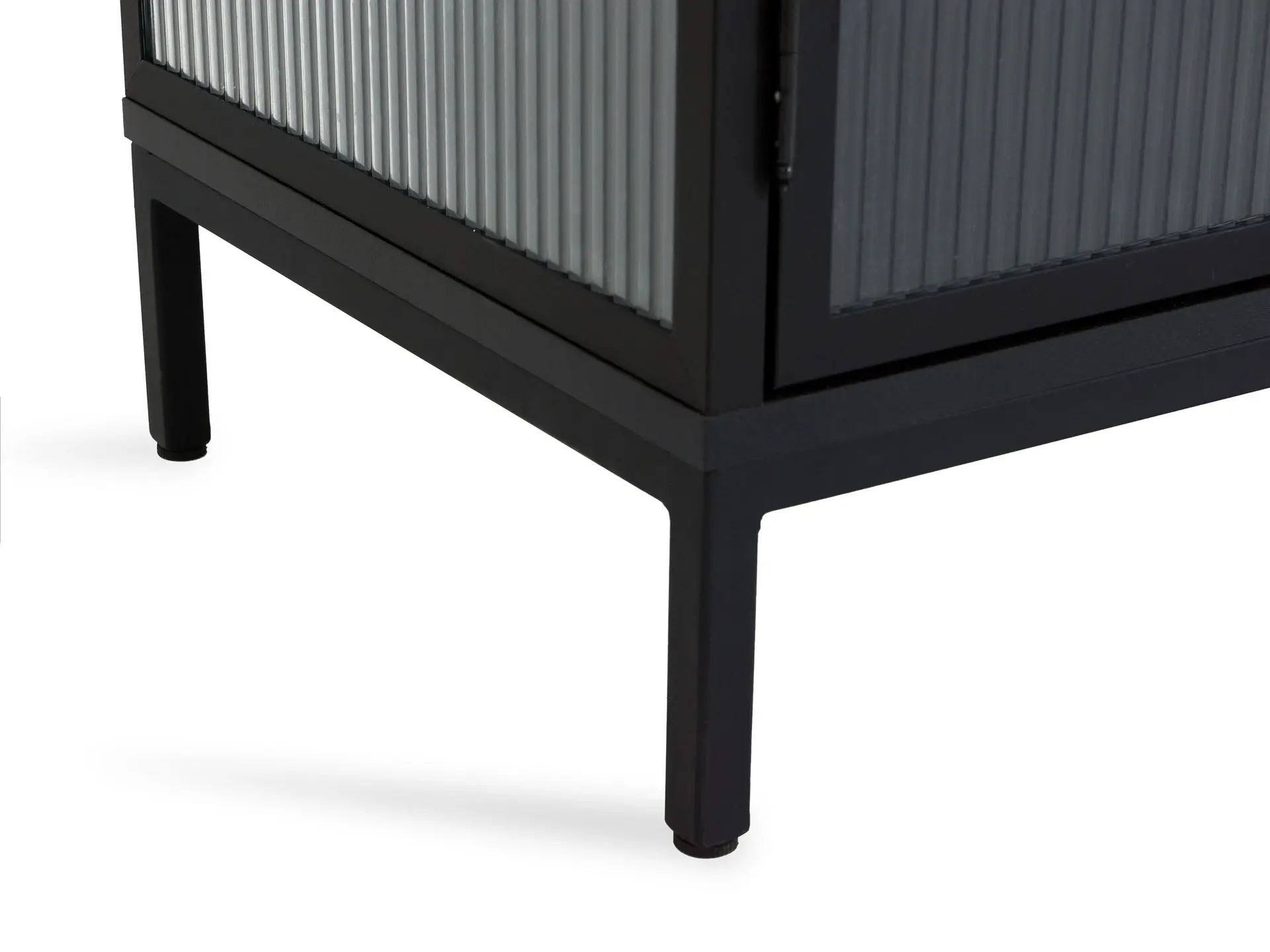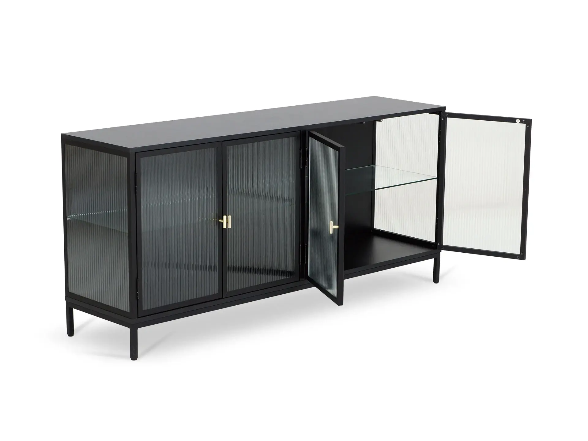 Концепция дизайна серванта The One — игра противоположностей с эклектической основой. Каркас из алюминиевого профиля контрастирует со стеклянной поверхностью. Этот союз материалов придаёт традиционному предмету мебели свежий и небанальный внешний вид. Взаимодействие стильных противоречий также выражено в лаконичной архитектуре и выразительном чёрным цвете. Рифлёное стекло создает ощущение тайны и интриги. Сервант идеально подходит для вещей, которые не должны быть на первом плане, но про которые вы не хотите забывать. Двери закрываются мягко и бесшумно благодаря магнитным фиксаторам. Сервант The One станет гармоничным элементом лофтового интерьера, неоклассики, арт-деко, минимализма.