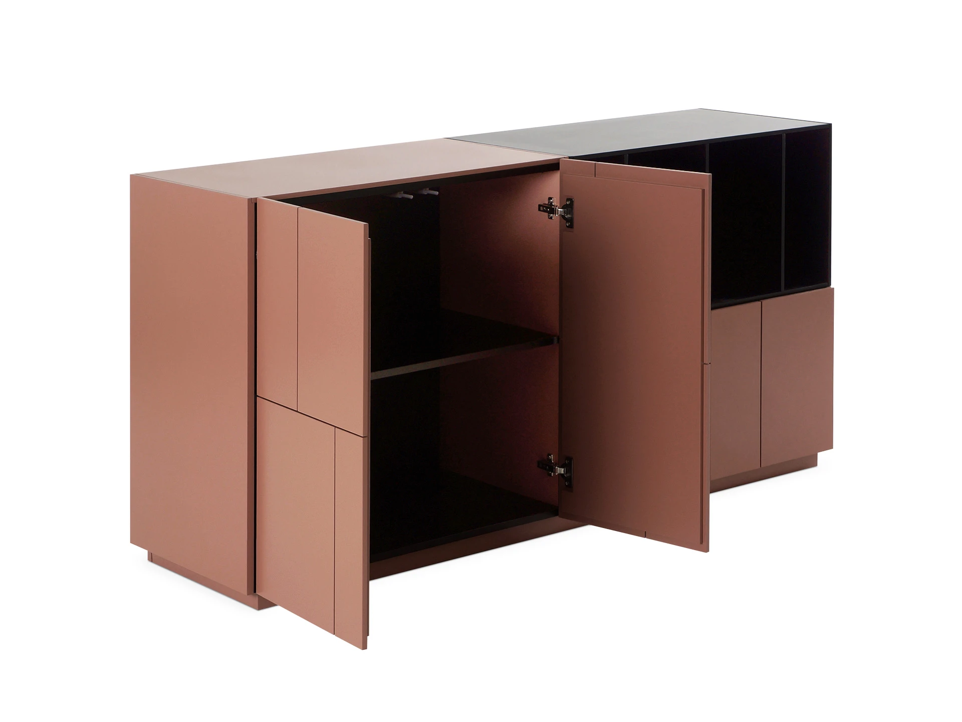 Гармонично впишется в современную локацию гостиной, прихожей, спальни, рабочей зоны. Подчеркнёт приём колор-блокинга в интерьере или выполнит роль элемента для визуального зонирования. Контрастное сочетание цветов фасадов сделает пространство интересным и выразительным.