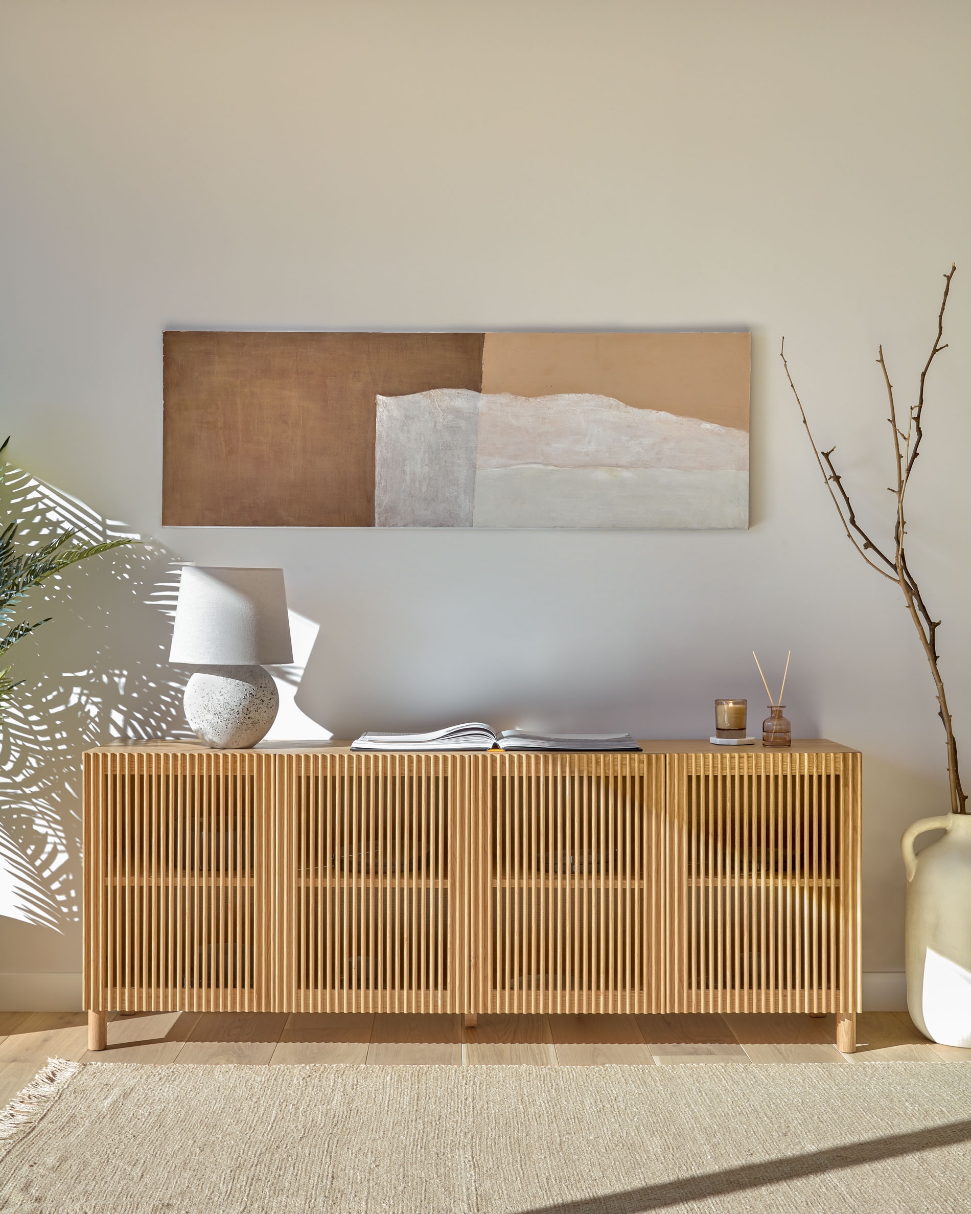 Сервант Beyla — это идеальное сочетание естественной дубовой древесины и решетчатой фактуры. Вместе они создают великолепную игру света и текстуры, которая преобразит вашу обстановку. У серванта отличный дизайн и исполнение, в котором продумано все до мелочей — от материала до регулируемых по высоте ножек.