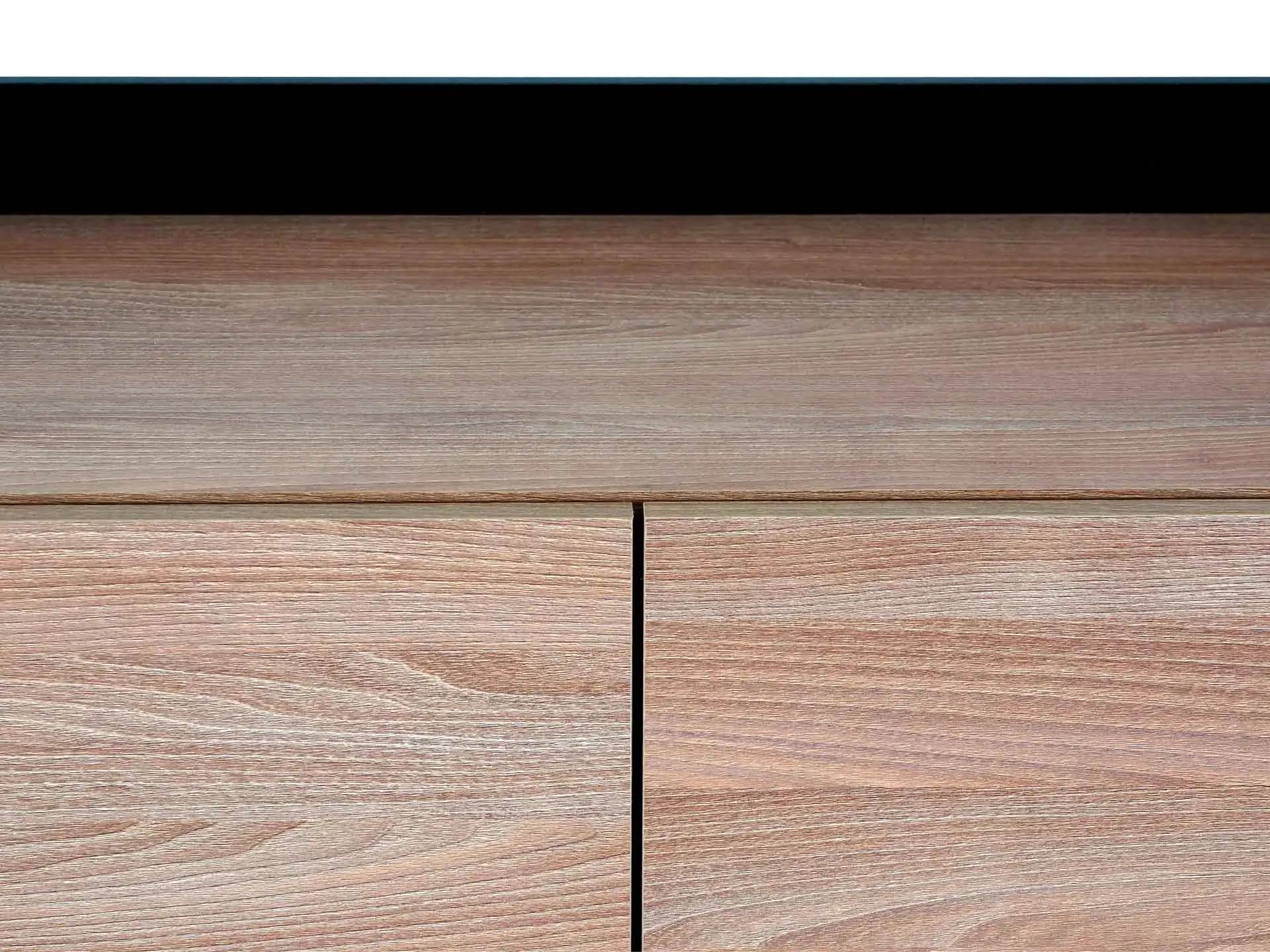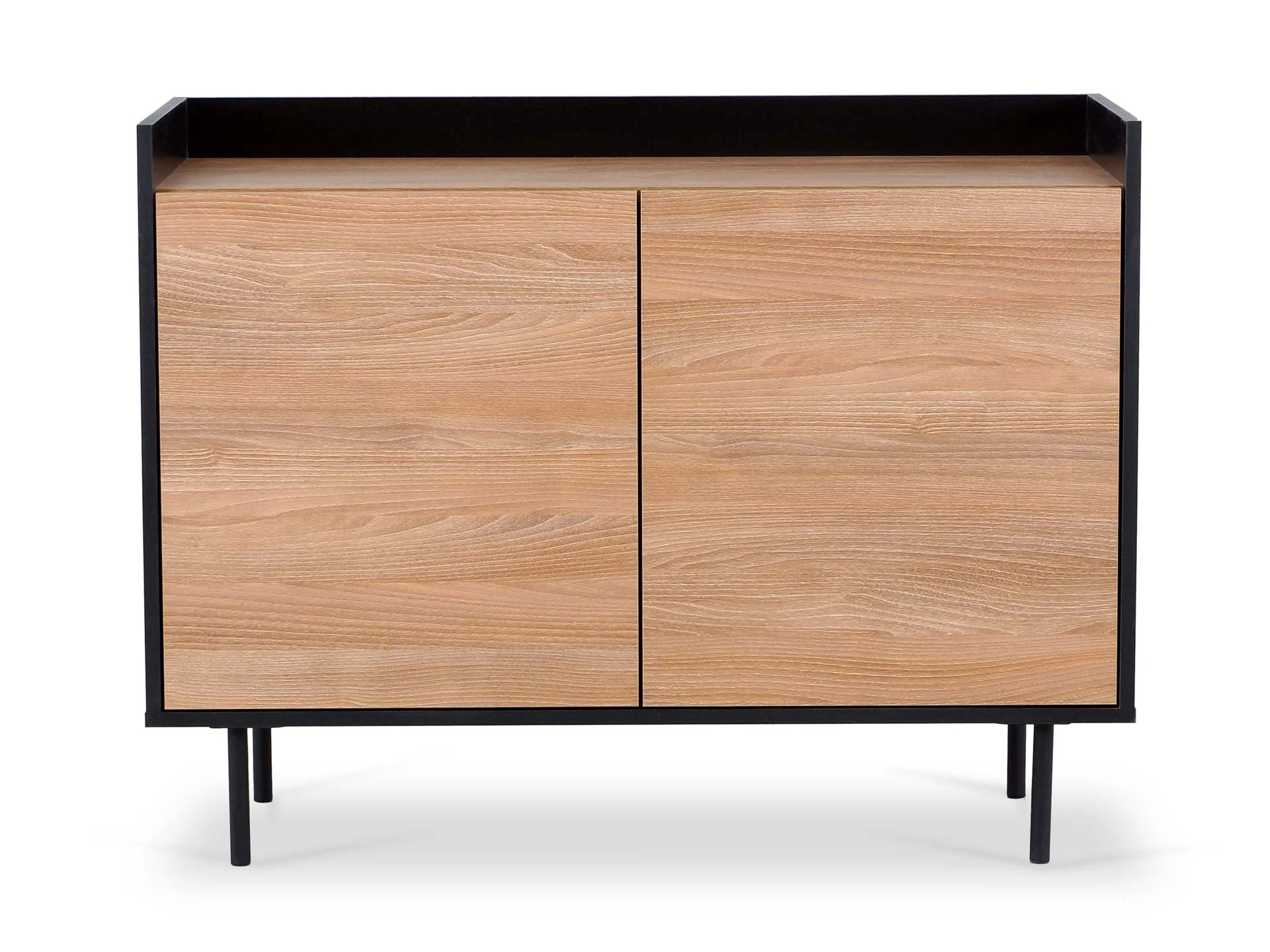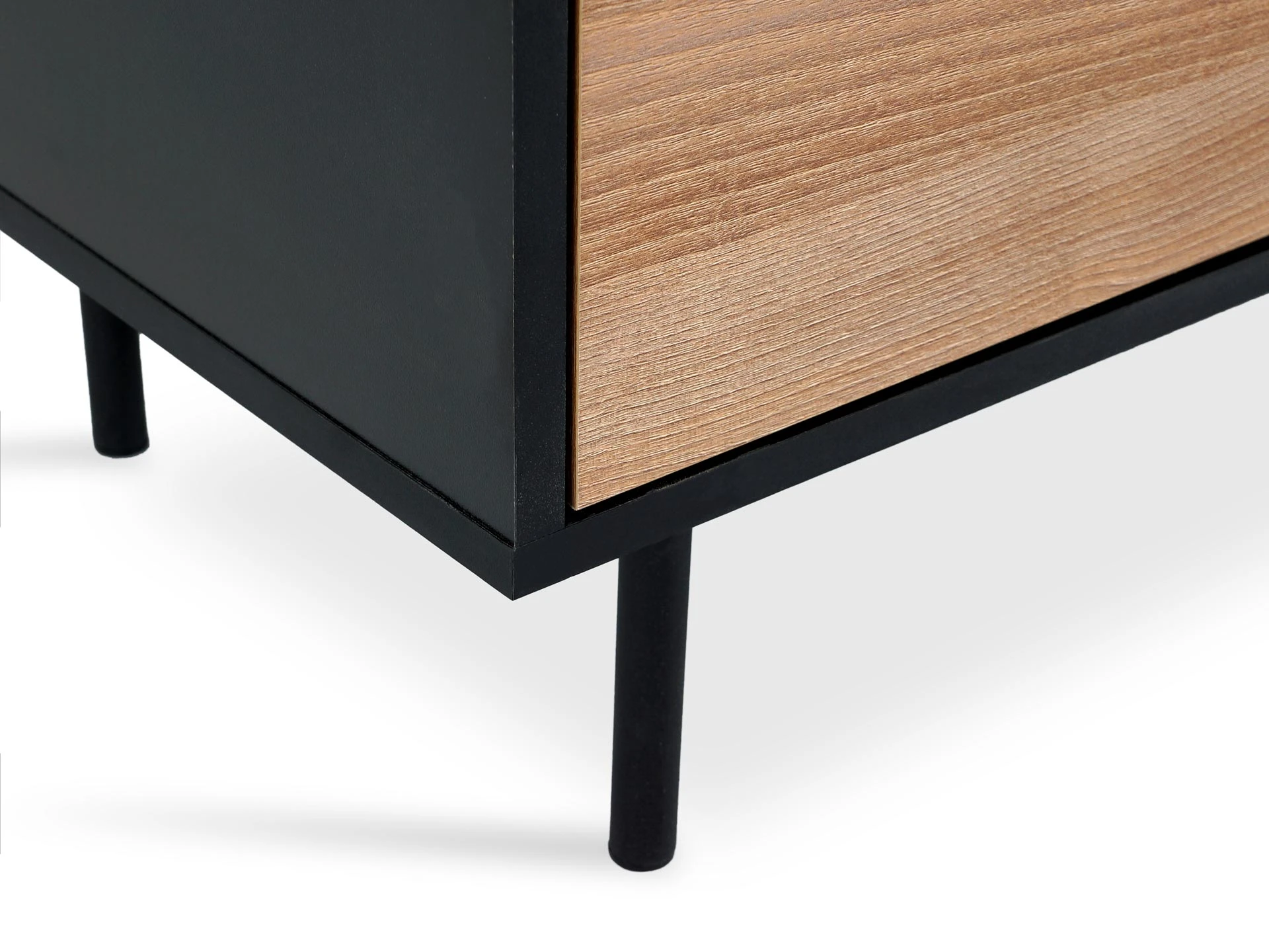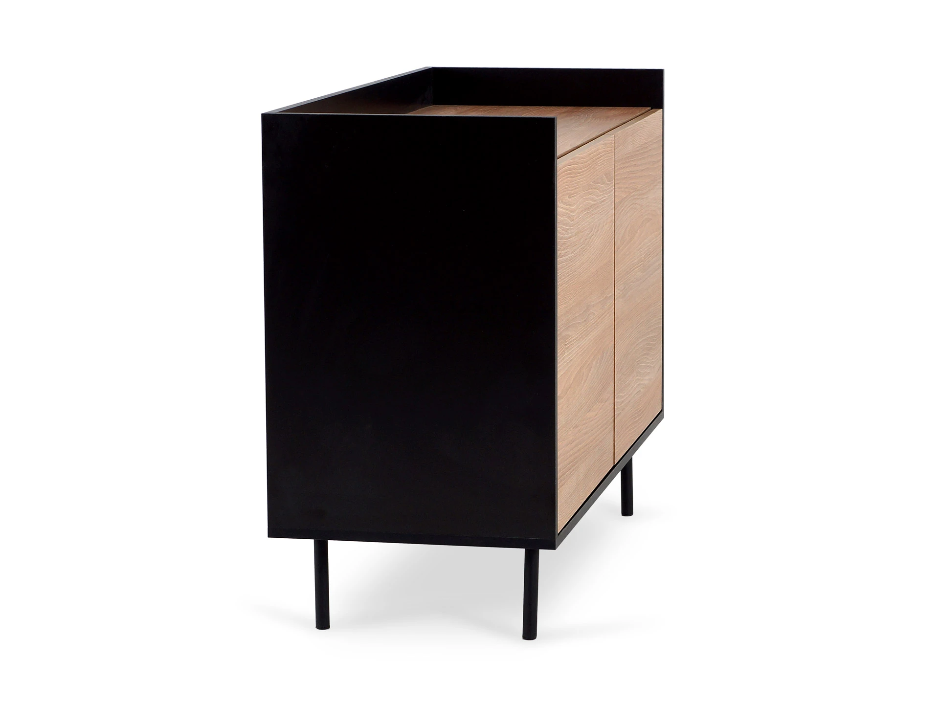 Особенность линейки заключается в контрасте элементов. Скругленные изящные металлические ножки поддерживают внушительное основание. При этом внешний вид моделей остается лёгким и элегантным. Также игру противоположностей усиливают древесная текстура на фасадах и черный цвет боковин с задней стенкой. Что придаёт большей динамики и выразительности дизайну. Эксклюзивность и завершенный вид воссоздает рамка, возвышающаяся над верхним горизонтом. Минималистичный вид конструкциям обеспечивает скрытая фурнитура. Двери и ящики открываются плавно, без шума и усилий. Комбинируйте комоды и серванты Look для создания целостного образа интерьера.