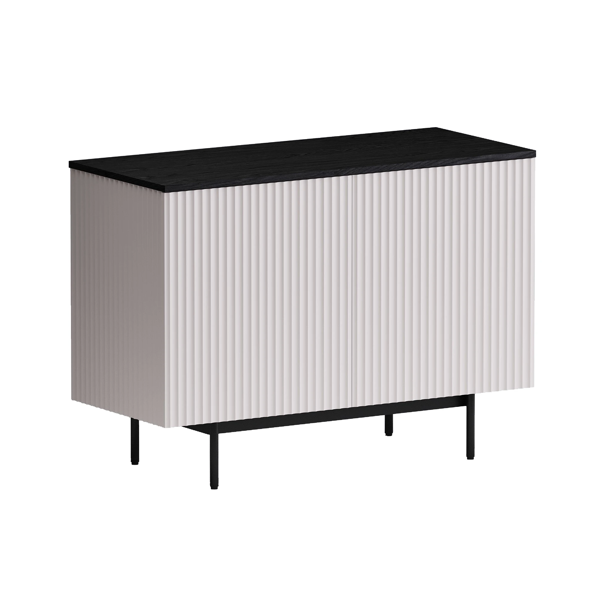 Сервант Mikko разделен вертикальной перегородкой на два отделения, которые закрываются распашными дверями. В каждом отделении по одной съёмной полке, перестановка полки по высоте не предусмотрена.