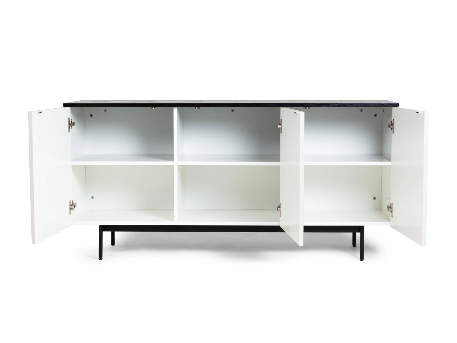 Лицевая фурнитура отсутствует, открывание фасадов по принципу нажал - открыл. Основания изделий металлические черного цвета с регулируемыми пластиковыми подпятниками.