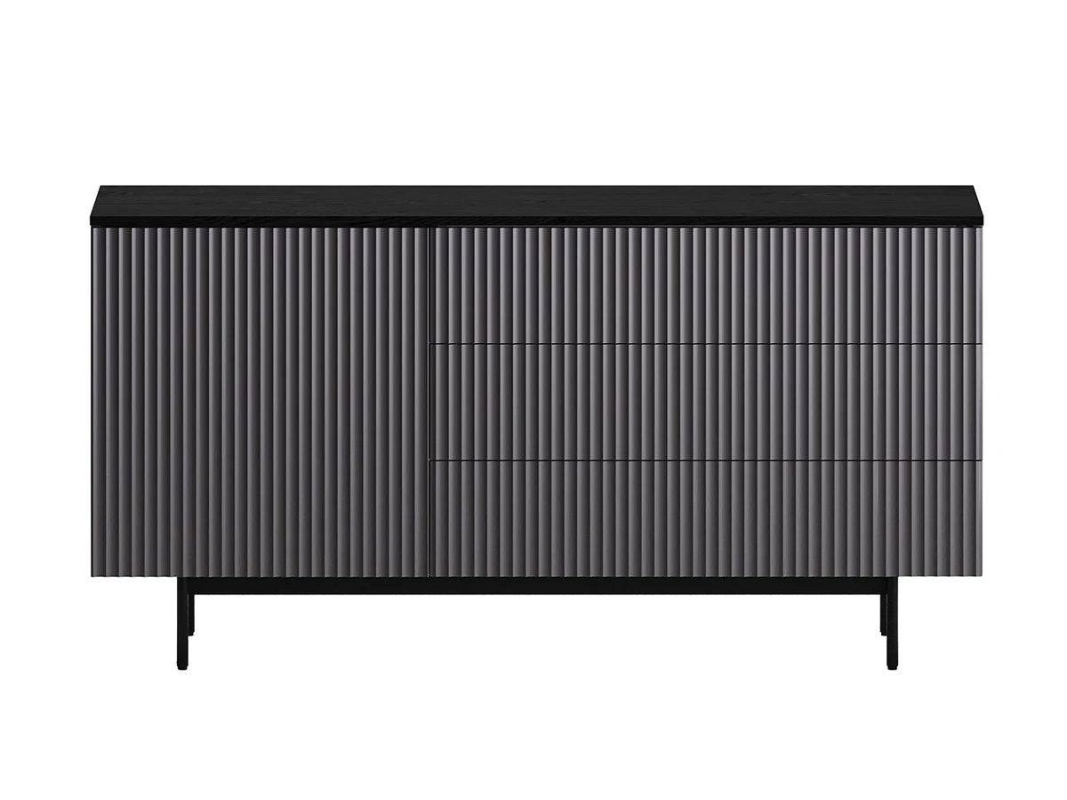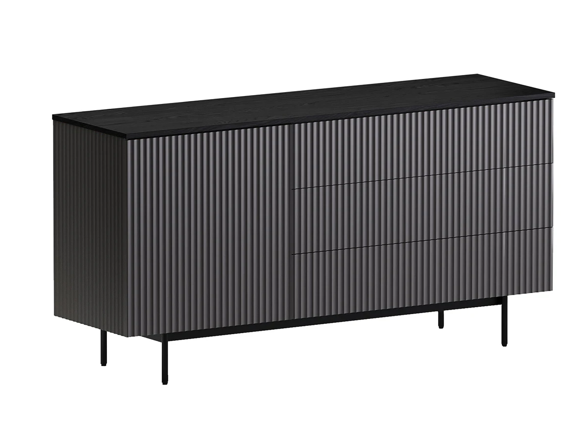 Идея дизайна — баланс индустриального характера и органичных элементов. Мебель сочетает в себе прочное металлическое основание, крышку с дубовым шпоном и рельефный фасад с фрезеровкой. Дверцы и ящики открываются легким нажатием. Отсутствие фурнитуры придает моделям аккуратность и ритмичность. Используйте их для хранения книг, техники в гостиной, одежды и текстиля в спальне, важных мелочей в прихожей, документов и канцелярии в рабочей зоне, декоративных вещей в творческой локации. Можете выбрать цвет крышки: светлый или темный. С мебелью Mikko вы грамотно спрячете лишнее и эстетично экспонируете нужное.