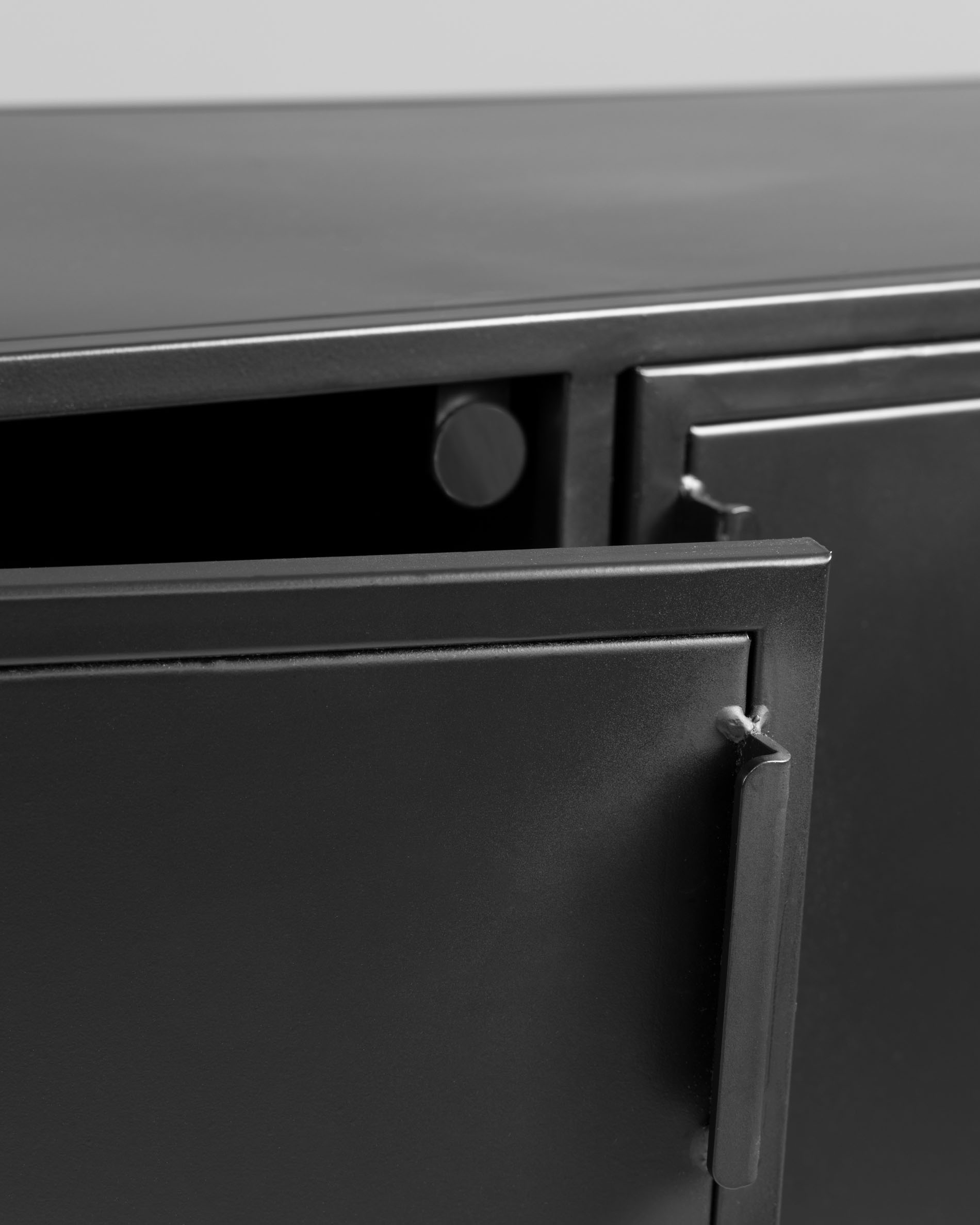 Сервант имеет каркасную конструкцию. Материал изготовления – металл, с матовым порошковым покрытием черного цвета.