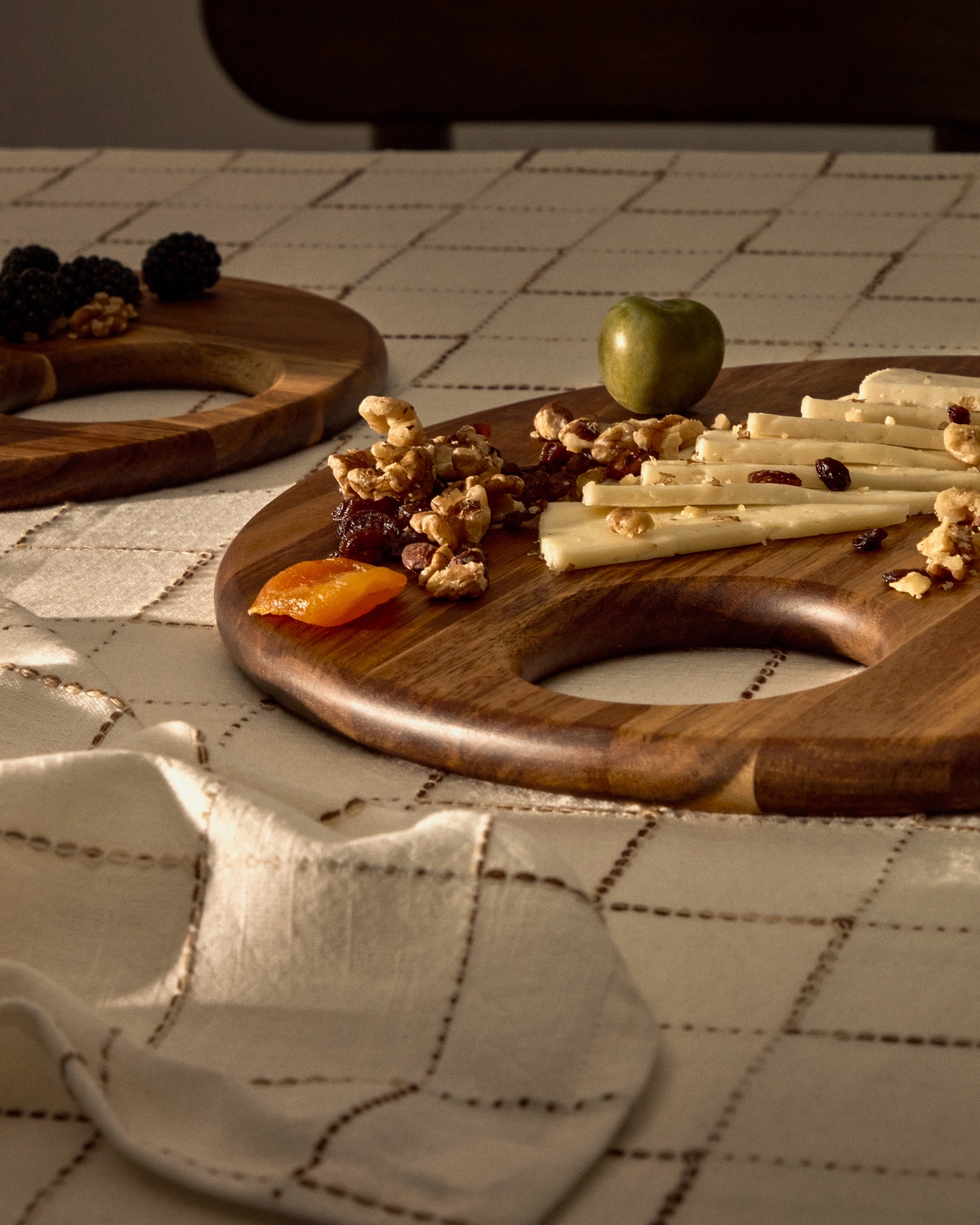 Для подачи ваших любимых рецептов мы представляем среднюю круглую доску Klot. Помимо наслаждения едой, вы также можете наслаждаться красивым декором с помощью этой доски из акации.