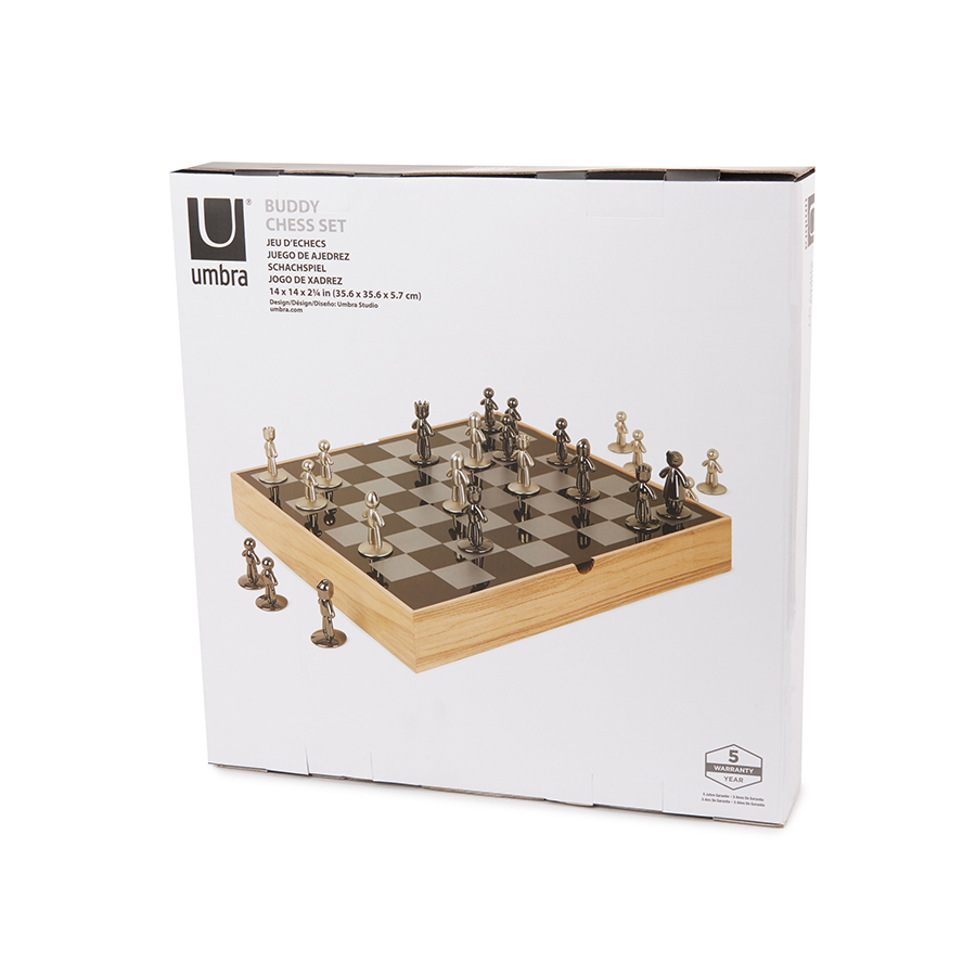 Набор из шахматной доски и необычных шахмат в виде культовых человечков Buddy станет отличным подарком и для заядлых шахматистов, и для тех, кто просто любит красивые необычные вещи.