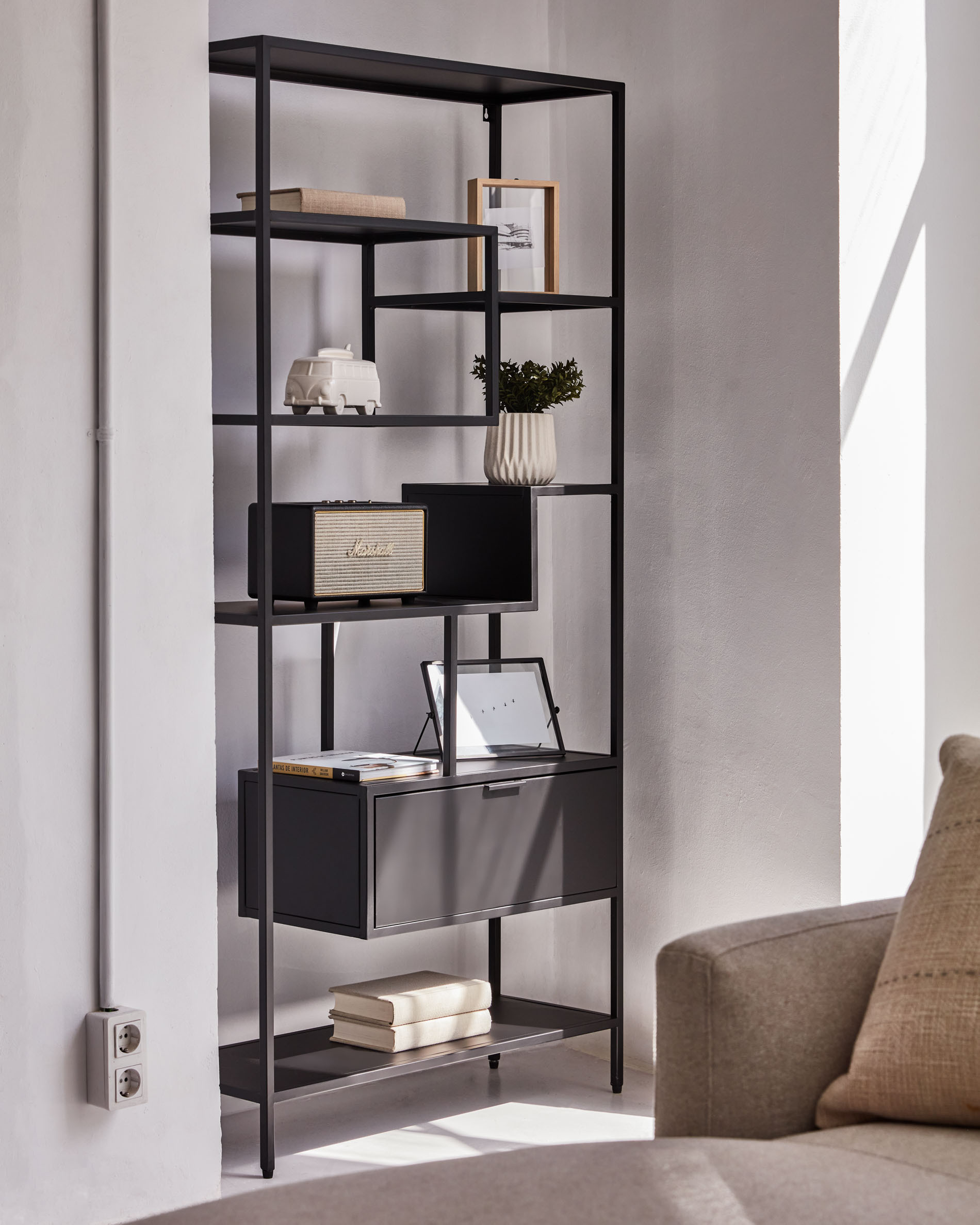 Книжный стеллаж Shantay от фабрики La Forma (ex Julia Grup) – конструктивный дизайн и трендовый черный металл.