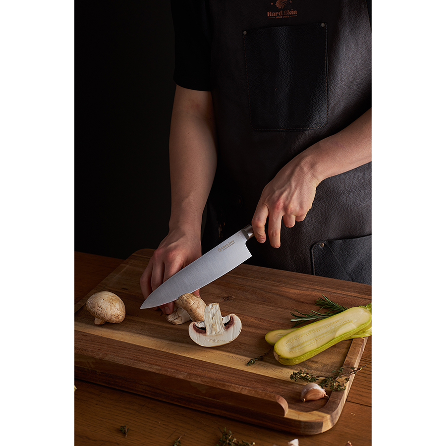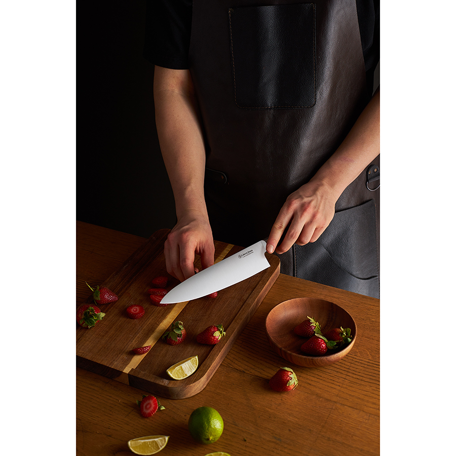 Шеф-нож Icon от бренда Liberty Jones – выбор профессионалов и любителей, стремящихся к совершенству в каждом движении. С этим кухонным инструментом вы сможете раскрыть свои кулинарные таланты и насладиться процессом приготовления любимых блюд. Лазерные системы контролируют угол заточки с точностью до 0,1°, что невозможно при ручной или механической обработке. Кроме того, лазерная заточка не перегревает металл (в отличие от ручных методов), сохраняя структуру стали.