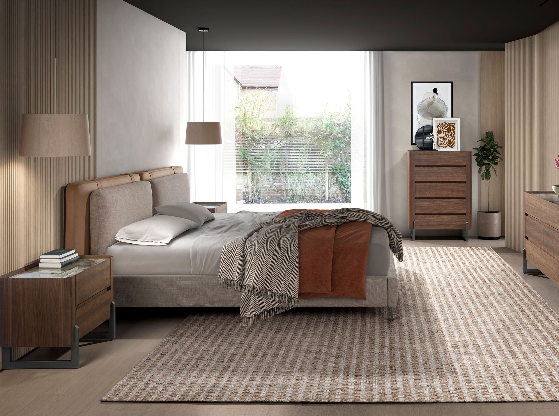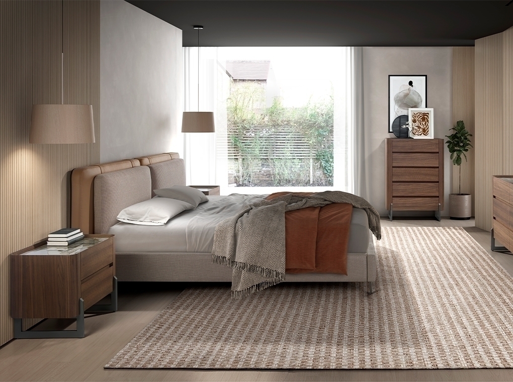 Шифоньер современного дизайна со структурой из натурального шпона ореха и оригинальными ножками из нержавеющей стали темного цвета. Благодаря элегантной столешнице из белого фарфорового мрамора с серыми и коричневыми прожилками с глянцевой отделкой вы получите изысканный вид, который вы ищете в своих комнатах. Он имеет достаточно места для хранения вещей с 5 ящиками с системой плавного закрывания.