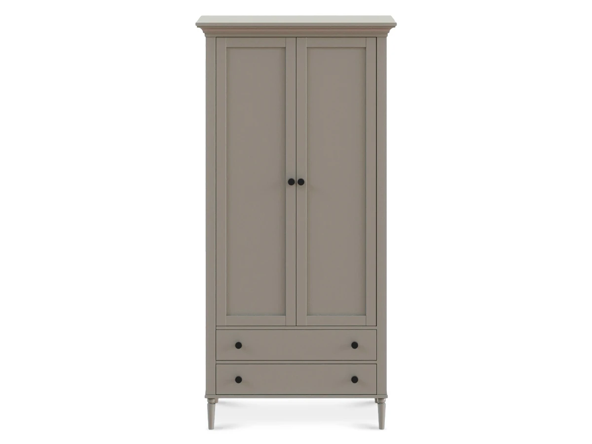 Шкаф Blues с двумя распашным дверями и двумя выдвижными ящиками. В отделении за дверями располагается продольная штанга для хранения одежды на плечиках, над штангой полка. Выдвижные ящики расположены в нижней части шкафа. Фасады из МДФ толщиной 16 мм. Корпуса ящиков изготовлены из ЛДСтП толщиной 16 мм.