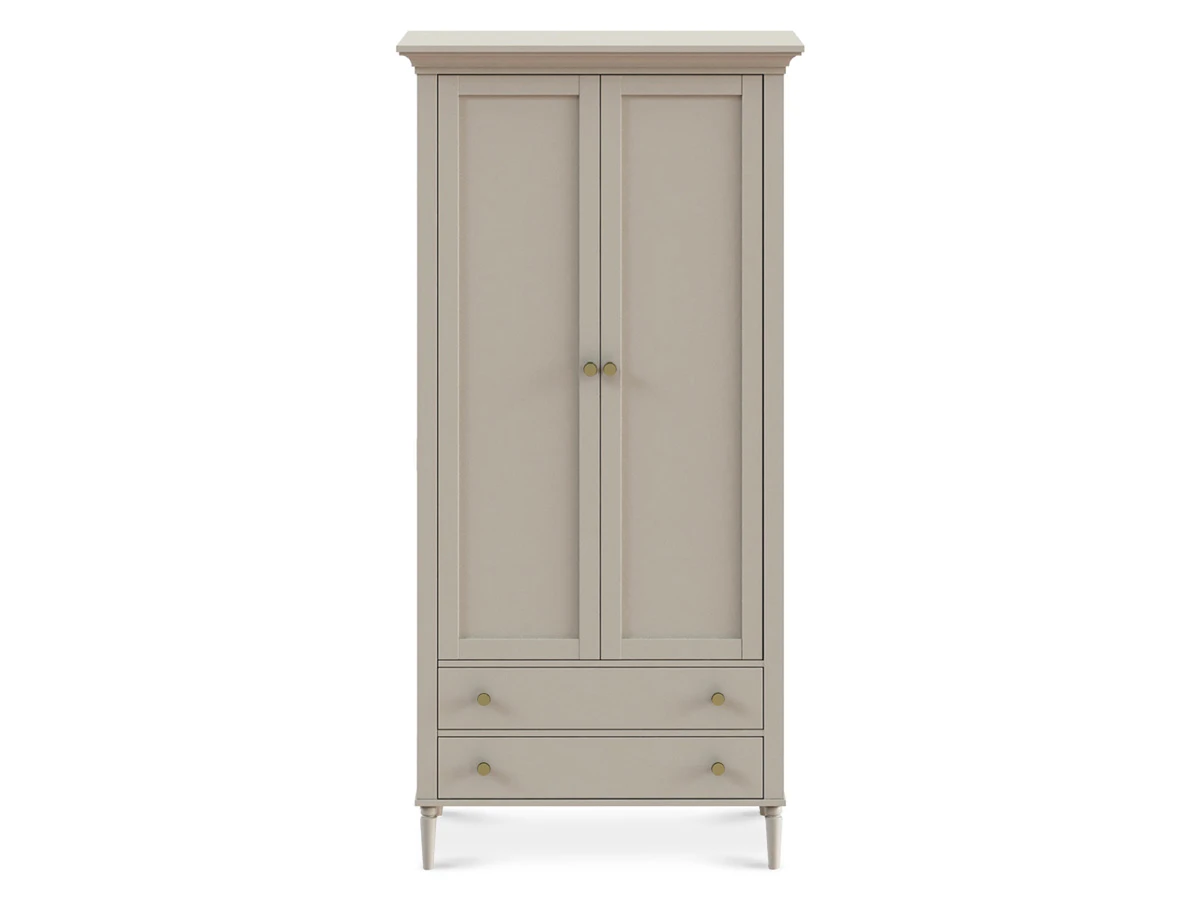 Шкаф Blues с двумя распашным дверями и двумя выдвижными ящиками. В отделении за дверями располагается продольная штанга для хранения одежды на плечиках, над штангой полка. Выдвижные ящики расположены в нижней части шкафа. Фасады из МДФ толщиной 16 мм. Корпуса ящиков изготовлены из ЛДСтП толщиной 16 мм.