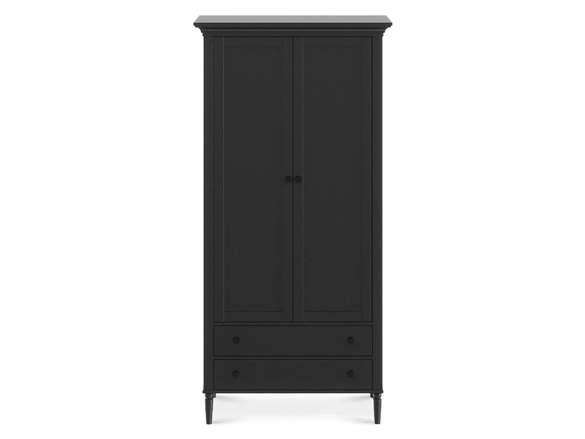 Шкаф Blues с двумя распашным дверями и двумя выдвижными ящиками. В отделении за дверями располагается продольная штанга для хранения одежды на плечиках, над штангой полка. Выдвижные ящики расположены в нижней части шкафа. Фасады из МДФ толщиной 16 мм. Корпуса ящиков изготовлены из ЛДСтП толщиной 16 мм.