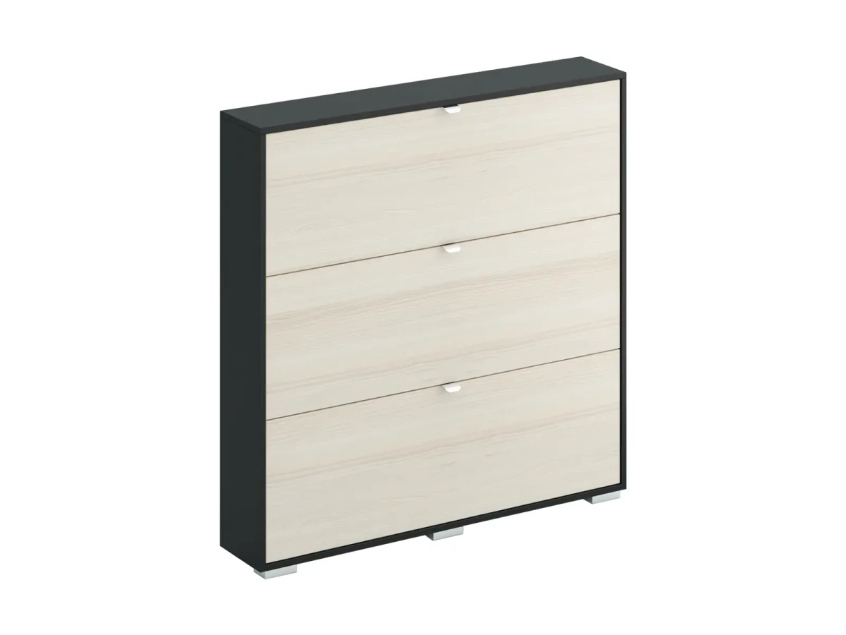 Шкаф для обуви Wide – удобная система закрытого типа для хранения обуви. Вместительный и компактный. На трёх откидных полках располагается до 12 пар обуви. Идеально подойдёт для семьи из 3-4 человек. Обеспечит порядок и чистоту в прихожей, обувь дольше будет выглядеть как новая. На ней не будет скапливаться пыль, форма не деформируется. Практичное решение для небольшой прихожей. Экономит место благодаря своим габаритам: широкий и узкий. Можно поставить в угол или вдоль стены, органично и незаметно впишется в пространство. Средняя высота – наиболее оптимальная, нужная обувь всегда под рукой. Стильный вид за счет древесной фактуры, четкой геометрии и лаконичной архитектуры.| 7 вариантов фасада: светлое или тёмное дерево; глянец; белое или коричневое стекло; зеркальный и другие – выбор под любой интерьер, а также в зависимости от цвета стен и объема освещения. Верхнюю поверхность можно использовать как полку для ключей и небольших вещей. Прочная конструкция, надёжный механизм. Шкаф для обуви состоит из трех отделений, устанавливается на регулируемые опоры и крепится к стене.|Срок гарантии – 24 месяца.