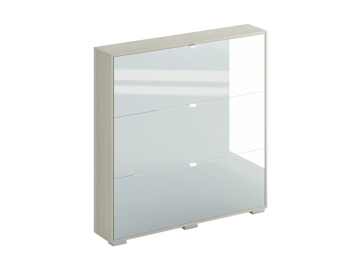 Шкаф для обуви Wide – удобная система закрытого типа для хранения обуви. Вместительный и компактный. На трёх откидных полках располагается до 12 пар обуви. Идеально подойдёт для семьи из 3-4 человек. Обеспечит порядок и чистоту в прихожей, обувь дольше будет выглядеть как новая. На ней не будет скапливаться пыль, форма не деформируется. Практичное решение для небольшой прихожей. Экономит место благодаря своим габаритам: широкий и узкий. Можно поставить в угол или вдоль стены, органично и незаметно впишется в пространство. Средняя высота – наиболее оптимальная, нужная обувь всегда под рукой. Стильный вид за счет древесной фактуры, четкой геометрии и лаконичной архитектуры.| 7 вариантов фасада: светлое или тёмное дерево; глянец; белое или коричневое стекло; зеркальный и другие – выбор под любой интерьер, а также в зависимости от цвета стен и объема освещения. Верхнюю поверхность можно использовать как полку для ключей и небольших вещей. Прочная конструкция, надёжный механизм. Шкаф для обуви состоит из трех отделений, устанавливается на регулируемые опоры и крепится к стене.|Срок гарантии – 24 месяца.