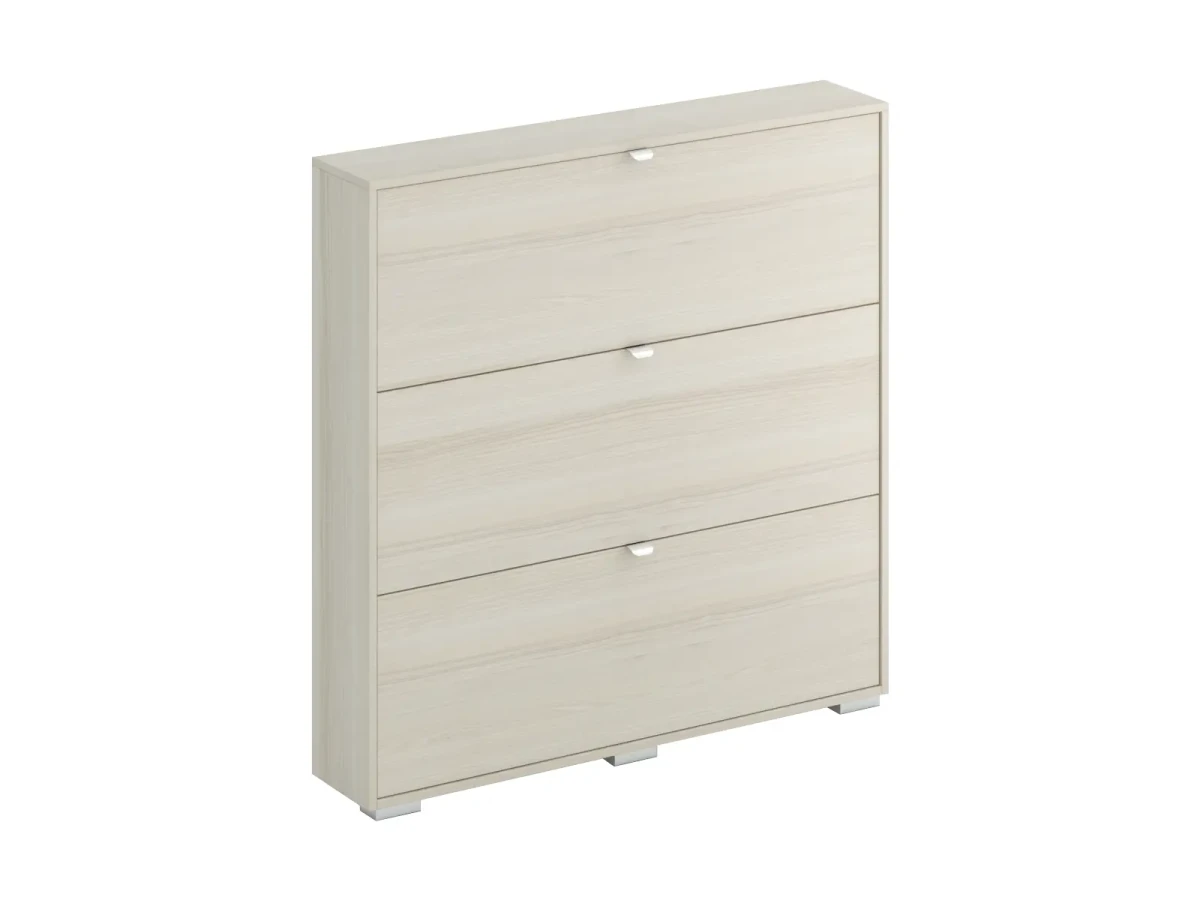 Шкаф для обуви Wide – удобная система закрытого типа для хранения обуви. Вместительный и компактный. На трёх откидных полках располагается до 12 пар обуви. Идеально подойдёт для семьи из 3-4 человек. Обеспечит порядок и чистоту в прихожей, обувь дольше будет выглядеть как новая. На ней не будет скапливаться пыль, форма не деформируется. Практичное решение для небольшой прихожей. Экономит место благодаря своим габаритам: широкий и узкий. Можно поставить в угол или вдоль стены, органично и незаметно впишется в пространство. Средняя высота – наиболее оптимальная, нужная обувь всегда под рукой. Стильный вид за счет древесной фактуры, четкой геометрии и лаконичной архитектуры.| 7 вариантов фасада: светлое или тёмное дерево; глянец; белое или коричневое стекло; зеркальный и другие – выбор под любой интерьер, а также в зависимости от цвета стен и объема освещения. Верхнюю поверхность можно использовать как полку для ключей и небольших вещей. Прочная конструкция, надёжный механизм. Шкаф для обуви состоит из трех отделений, устанавливается на регулируемые опоры и крепится к стене.|Срок гарантии – 24 месяца.
