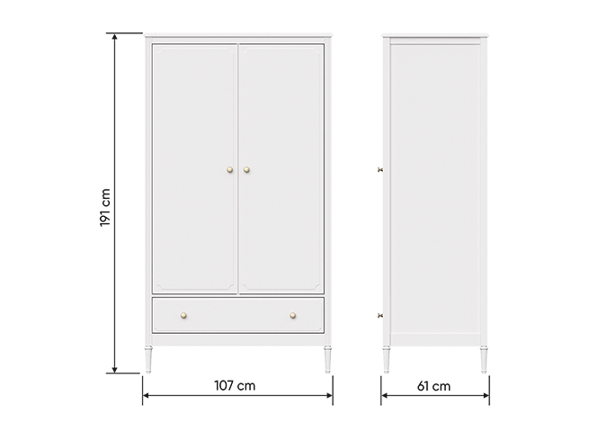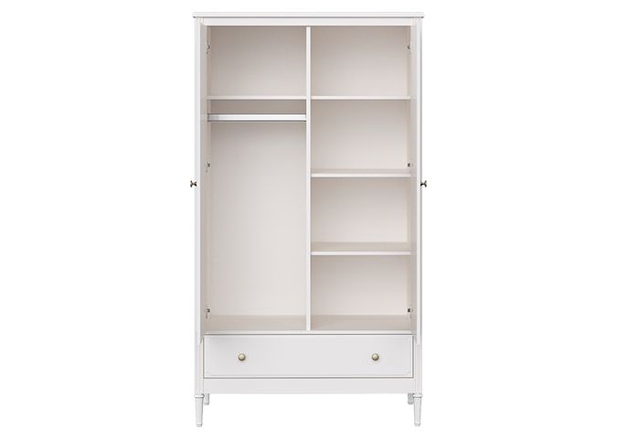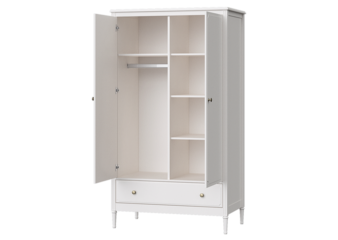 Двухстворчатый шкаф Elit имеет два отделения с полками и штангой.
