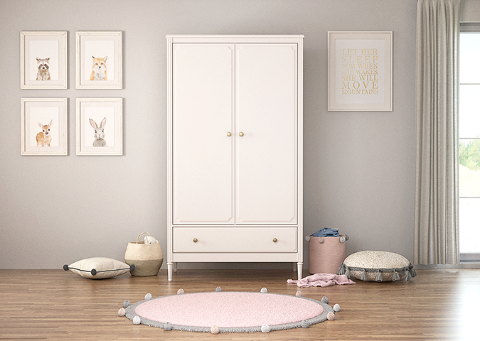 Каркас шкафа сделан из массива бука, что обеспечивает устойчивость и долговечность конструкции.