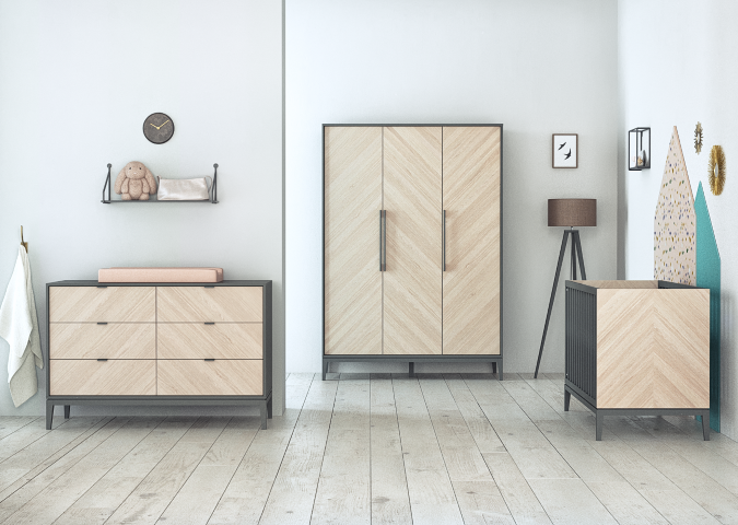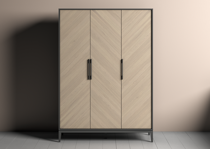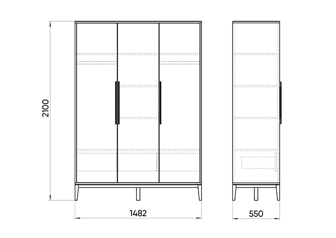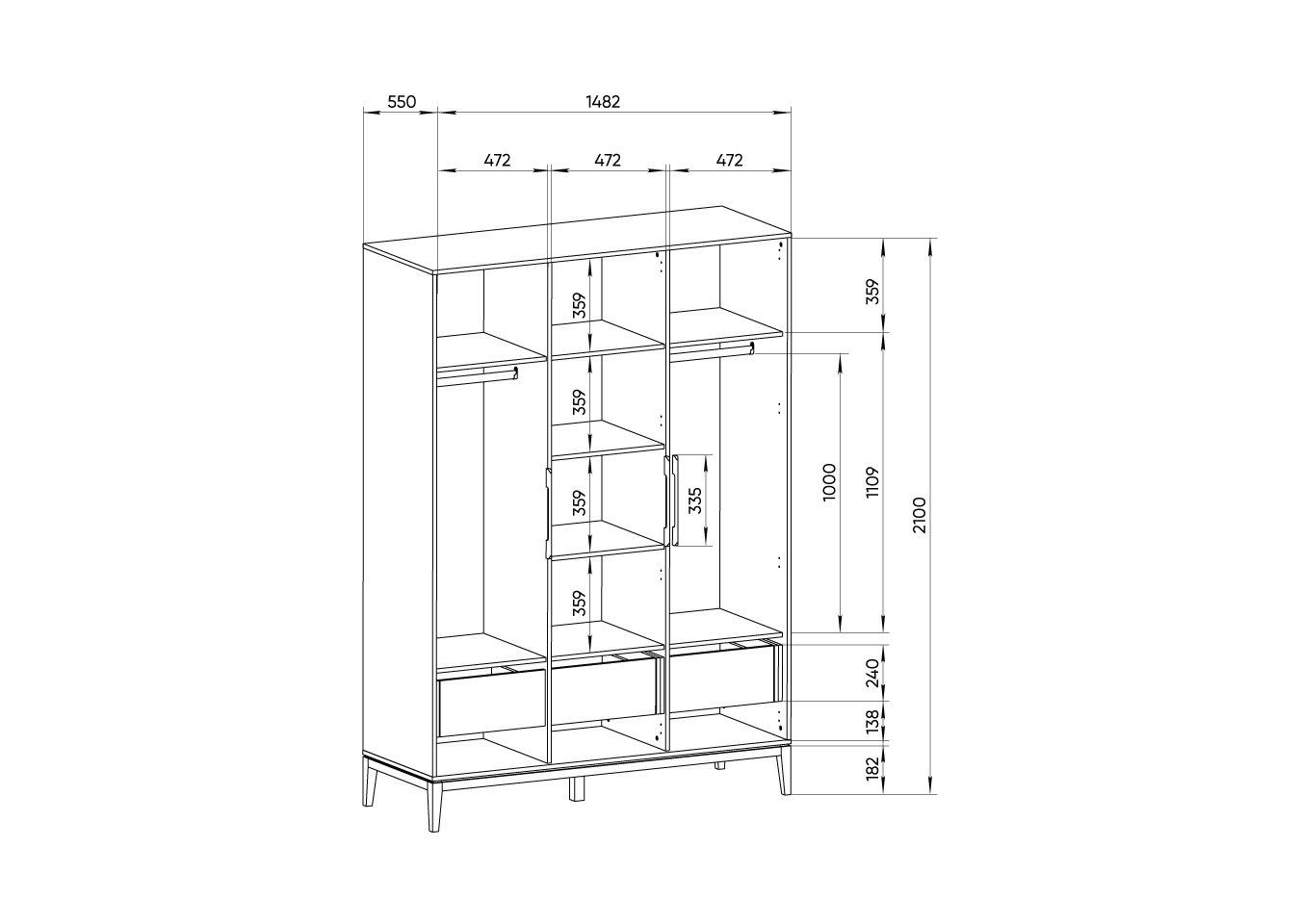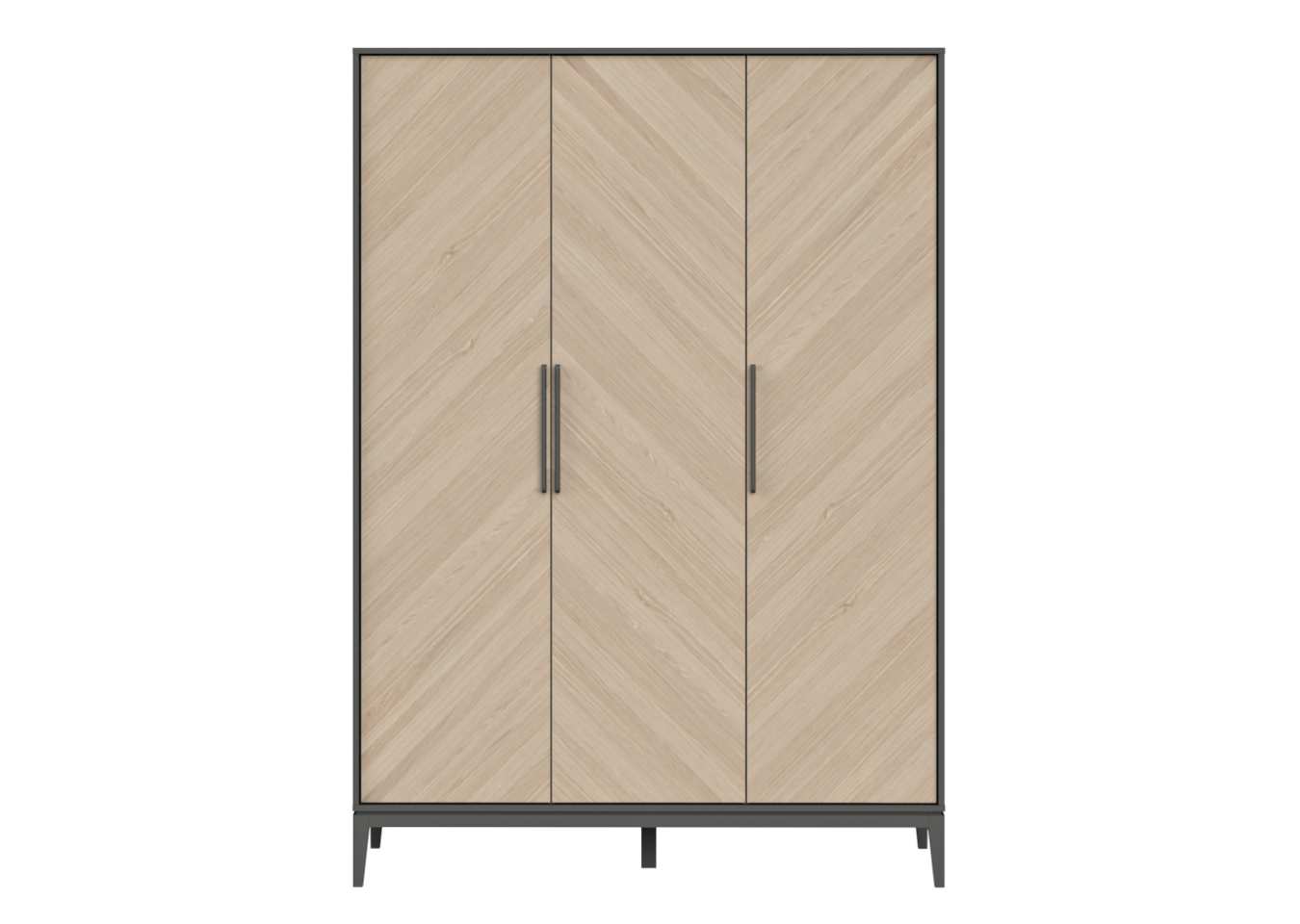 Шкаф Fjord 3-х створчатый Высота: 210 см Ширина: 148,2 см Глубина: 55 см Основание: массива бука Корпус: МДФ под эмалью Фасады: шпон дуба