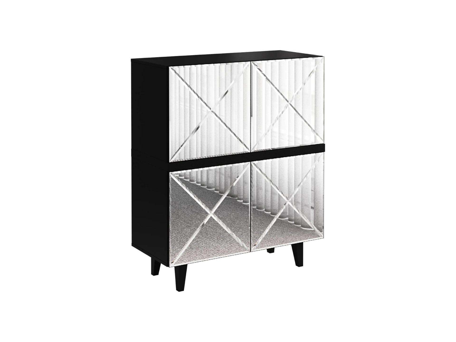 Коллекция дизайнерской корпусной мебели с глянцевыми и зеркальными фасадами в черно-белых цветах. Мебель выглядит эстетически строгой, легкой и четкой. Но при этом оригинальной и колоритной. В интерьере она создаст атмосферу порядка, элегантности, организованности. Геометрическая декоративная гравировка, отражающие фасады расширяют пространство, воплощают эффект простоты и неординарности. Важно, что шкафы, тумбы, комоды — универсальны и подходят для гостиной, спальни, кабинета, прихожей.