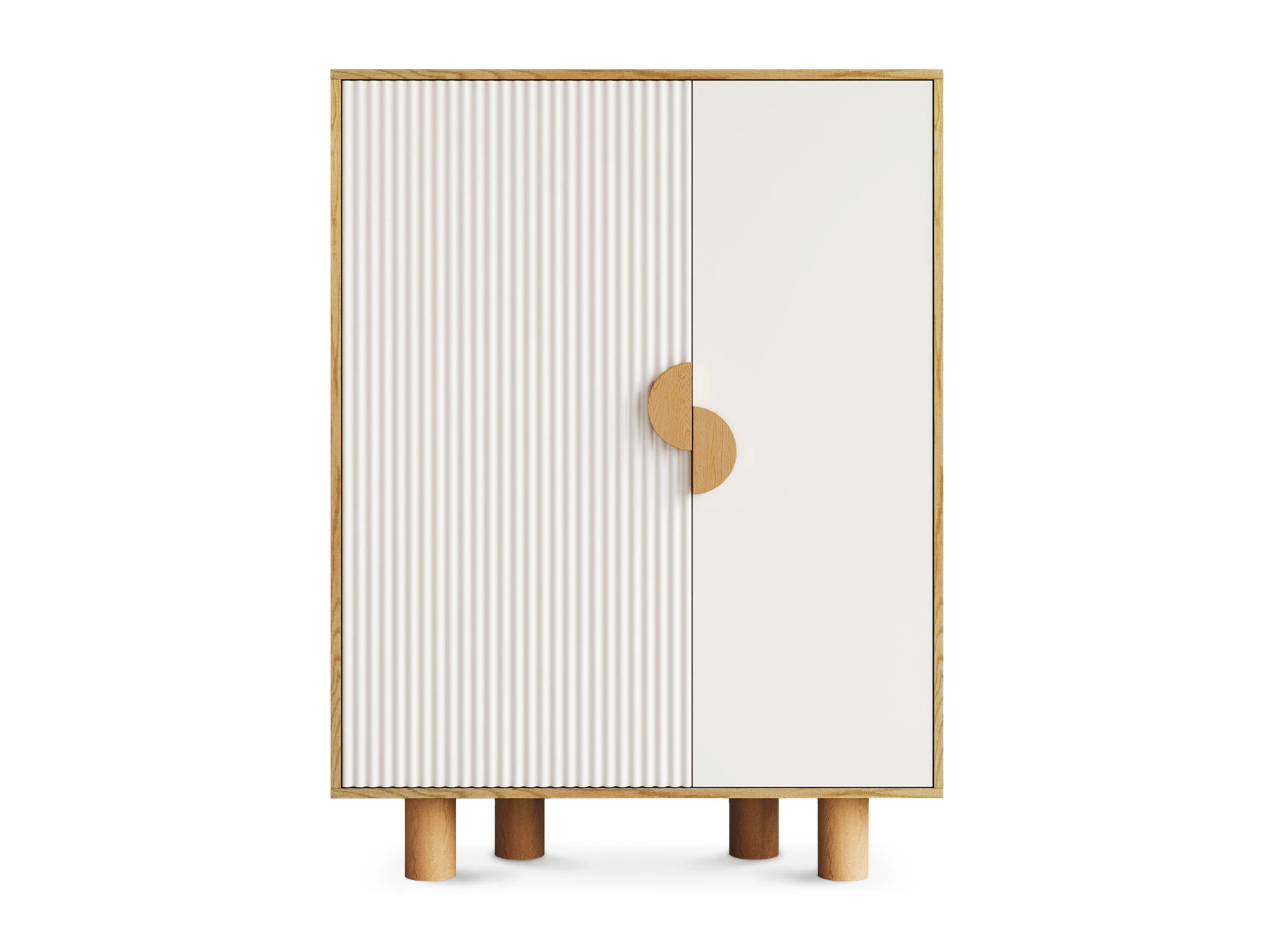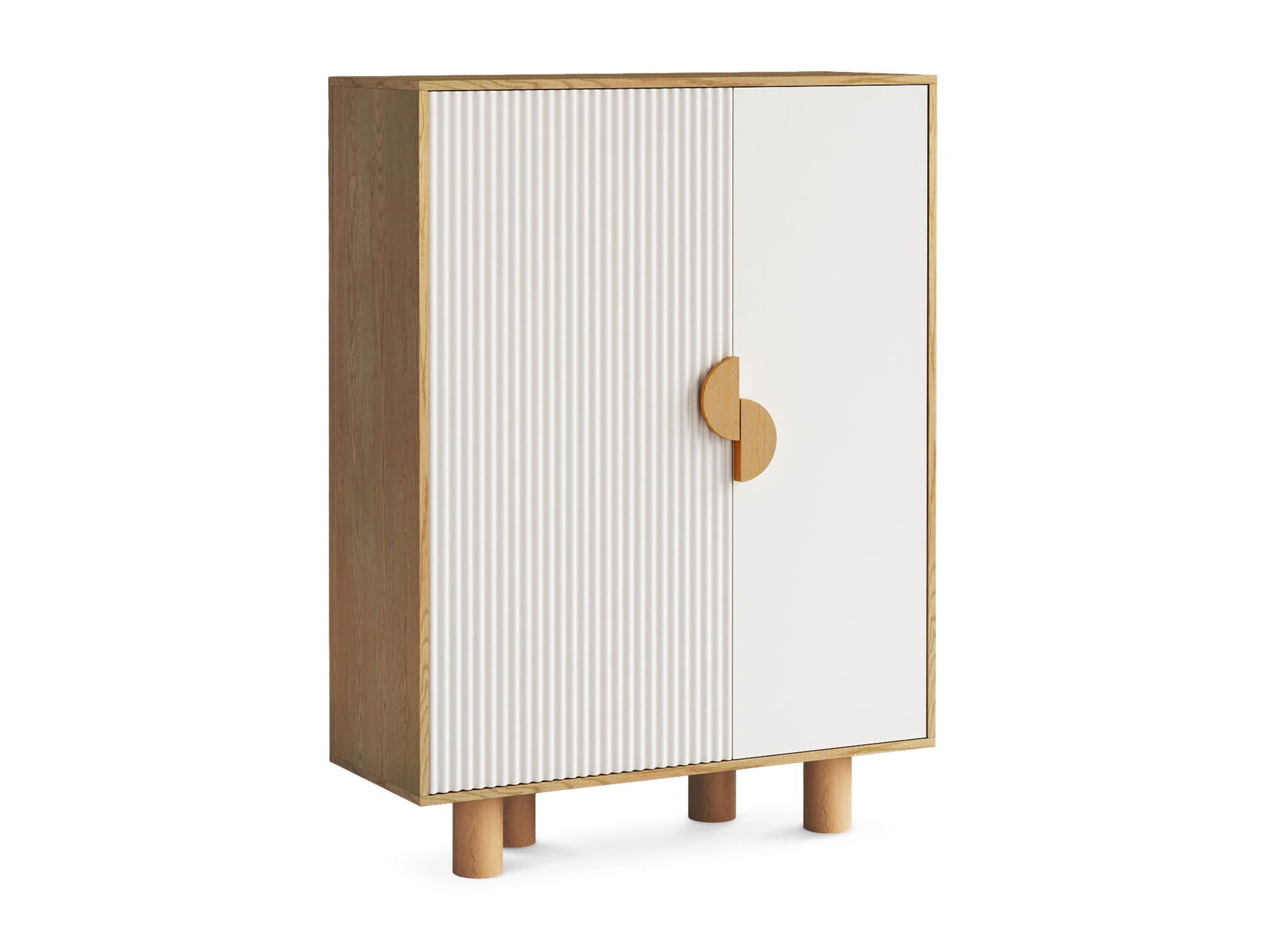 Cresco — стильная коллекция корпусной мебели для хранения вещей. Идея дизайна — нескучный минимализм. С одной стороны — практичность, спокойный внешний вид, универсальность. С другой — смелость, контрастность, оригинальность. Четкая геометрия корпуса и круглые ножки из бука, рельефная и гладкая части фасада, ассиметричное расположение ручек-полумесяцев — эти элементы отвечают за интересный внешний вид, который наполнит ваш интерьер разнообразием, ритмичностью, фактурами, акцентами.