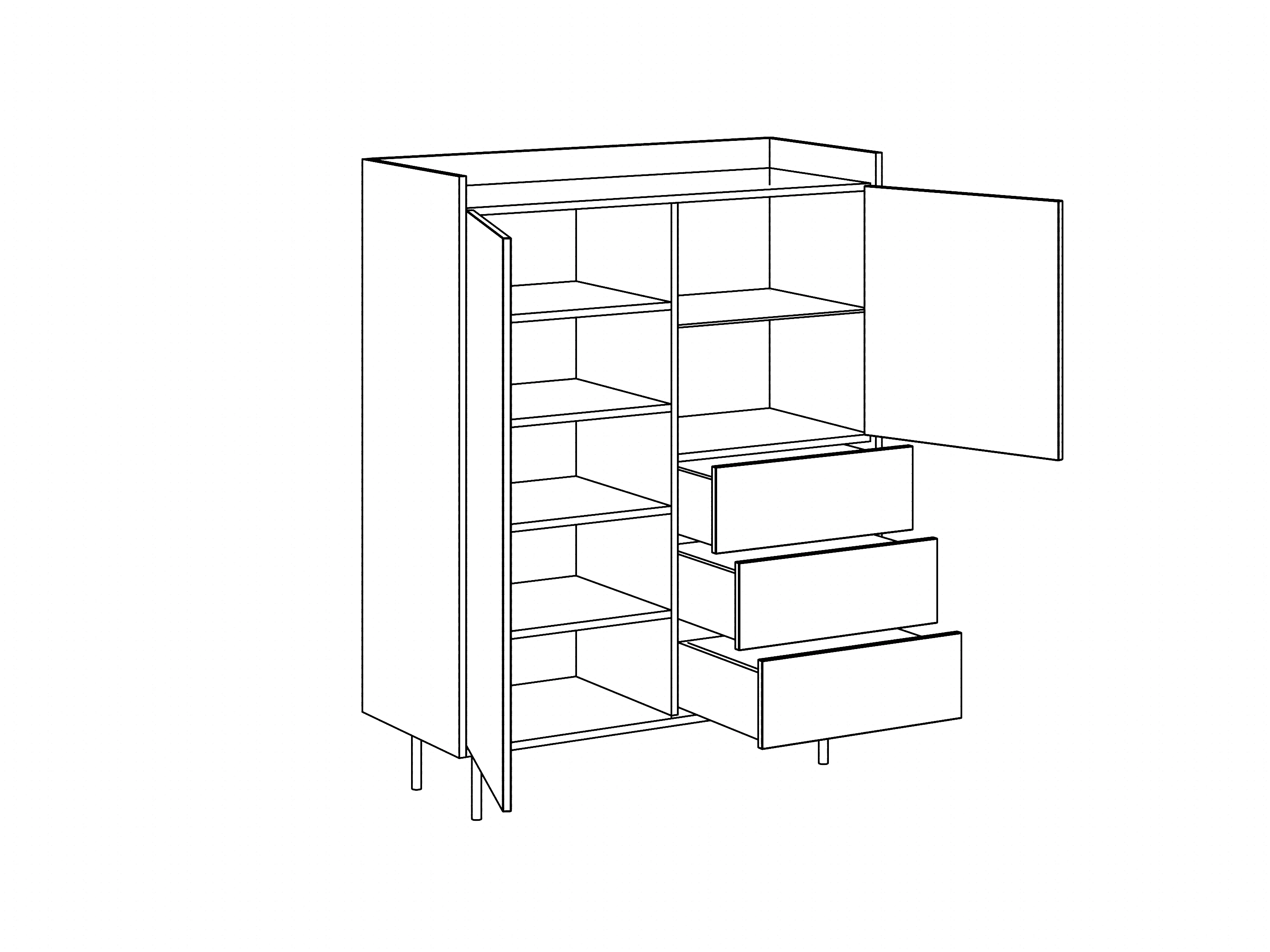 Сервант рекомендуется крепить к стене для защиты от опрокидывания (крепежи входят в комплект).