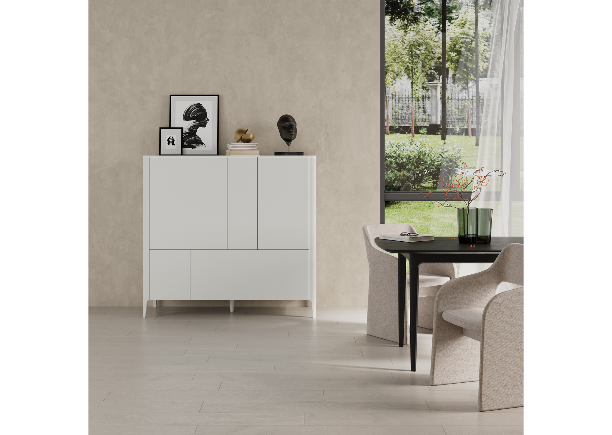 Высота: 135 см Ширина:145 см Глубина: 51 см Покрытие эмаль, RAL 7035 Материал: дуб, МДФ, внутри ЛДСП