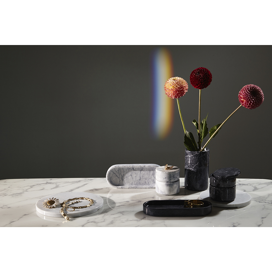 Коллекция Marm сочетает в себе естественную красоту природных материалов и утонченность классического дизайна. Аксессуары из мрамора привносят в оформление интерьера нотки элегантности, подчеркивая безупречный вкус хозяев дома. Уникальные узоры и оттенки натурального камня делают каждый предмет неповторимым.