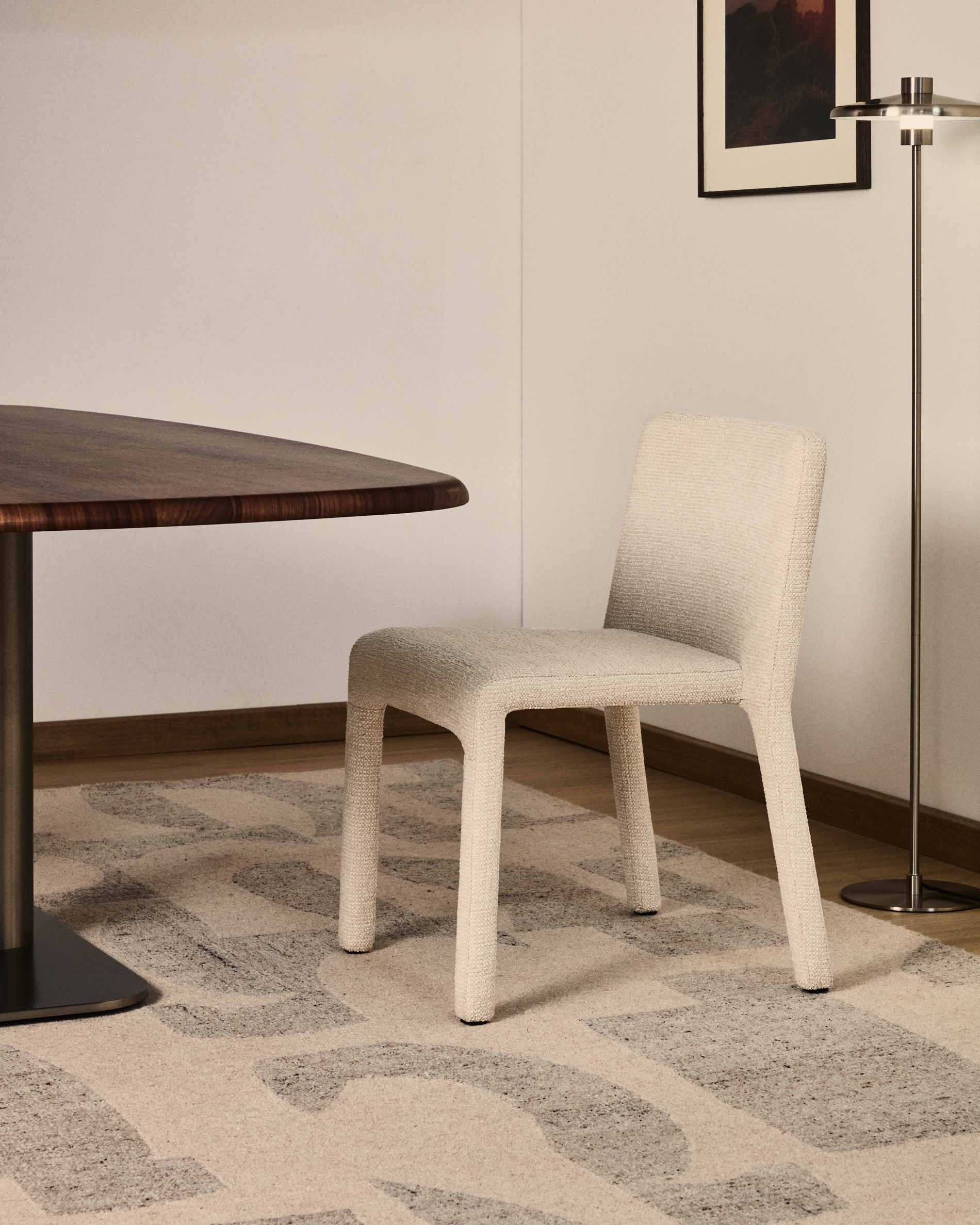 Этот мягкий стул с элегантным дизайном и изысканными контурами элегантно и сдержанно впишется в любой интерьер. Его лёгкая и сбалансированная форма передает простоту и оригинальность, делая его универсальным предметом мебели, который легко адаптируется как к домашней, так и к профессиональной обстановке. Благодаря внутренней структуре, состоящей из фанеры и инжекционного пеноматериала плотностью 55 кг/м³, он обеспечивает прочное и комфортное сиденье.