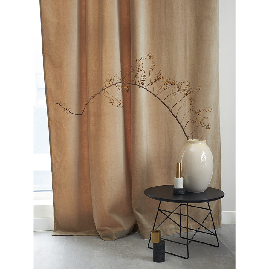 Штора из хлопкового бархата бежевого цвета из коллекции Essential – простой способ привнести в интерьер нотки роскоши и элегантности. Материал эффектно переливается на солнце и красиво драпируется, позволяя создавать интересные визуальные акценты. Текстиль отлично сочетается как с классическим, так и современным дизайном, в том числе с грубой отделкой в виде кирпичной кладки и штукатурки.