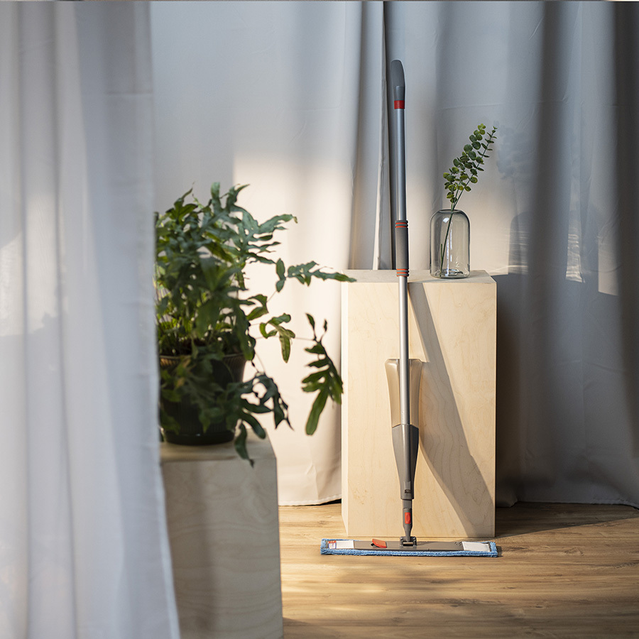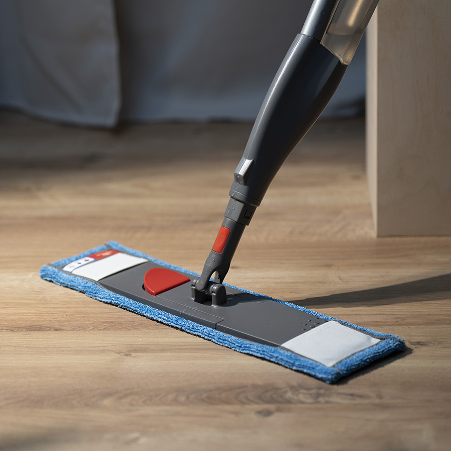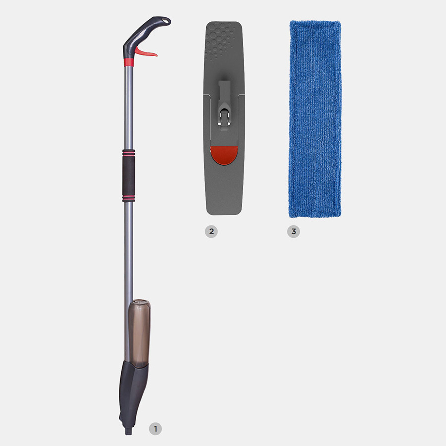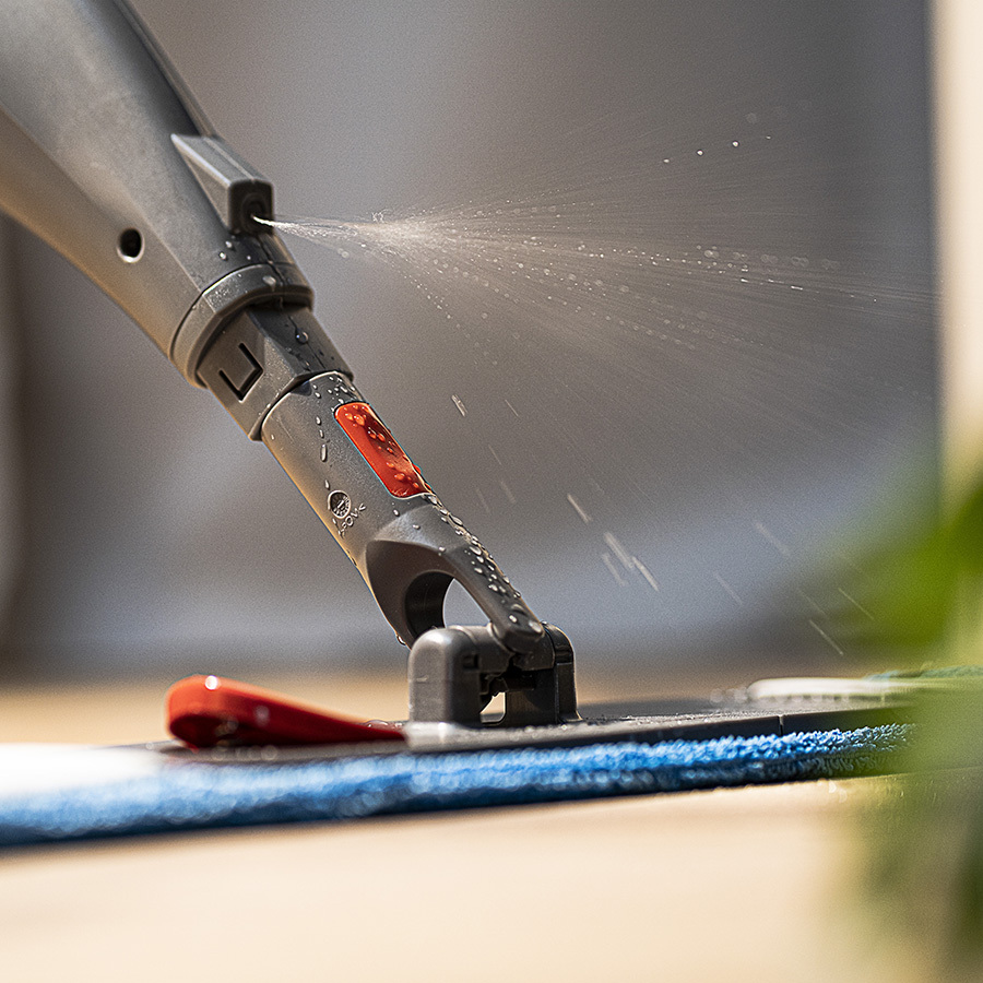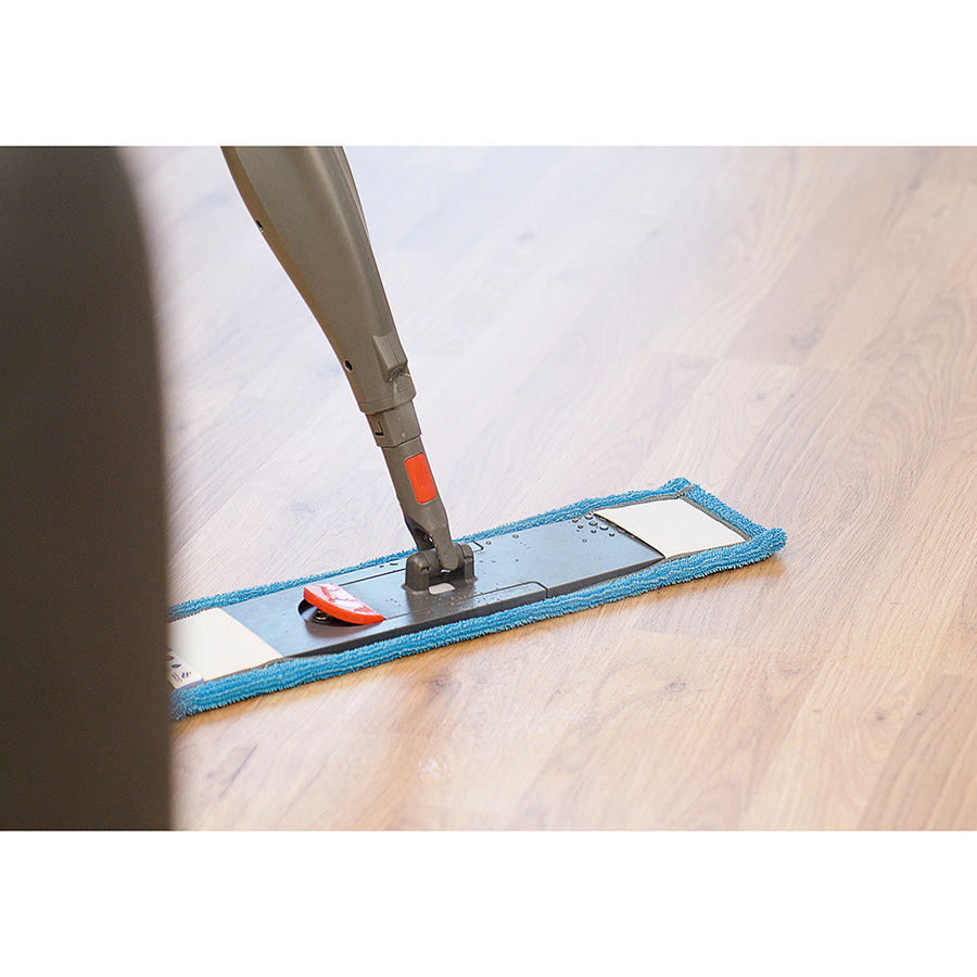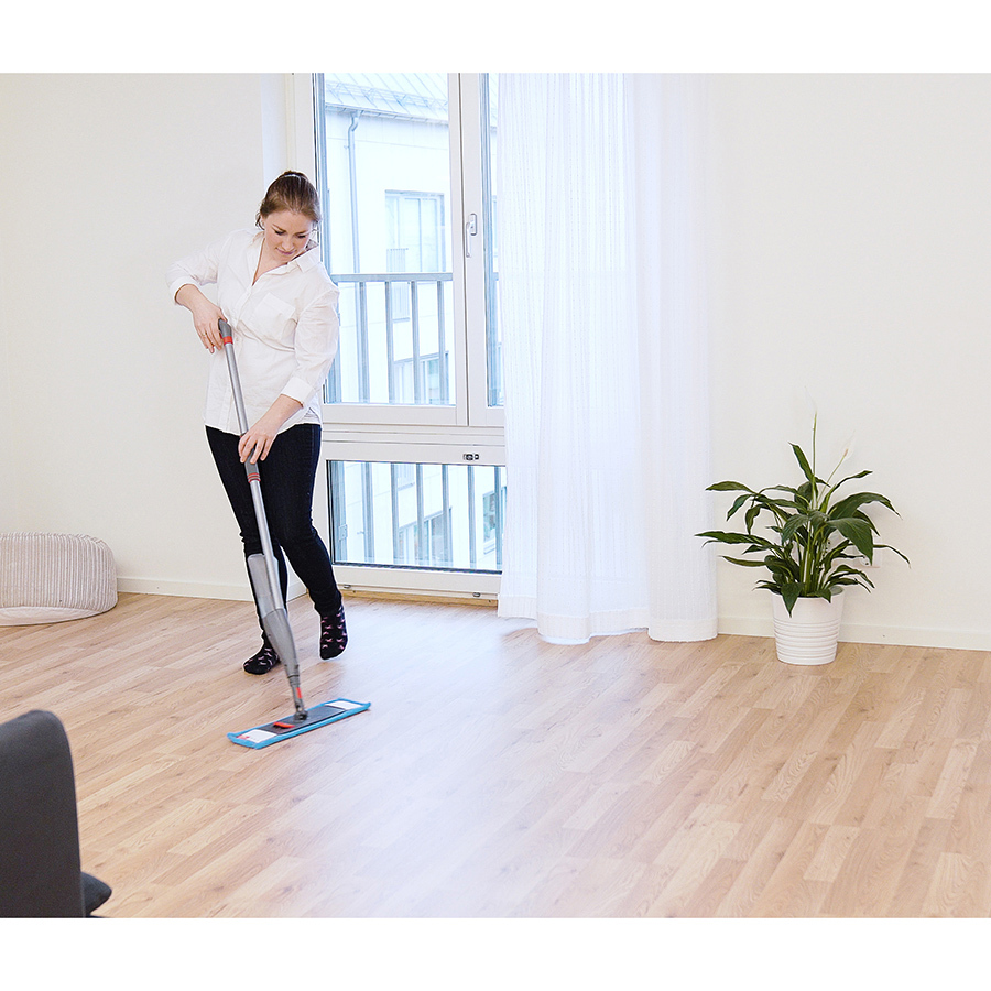 В комплект входят ручка 130 см со встроенным пусковым механизмом и насадка-распылитель, емкость 0,5 л и микрофибра. Выжимая спусковой крючок, распыляйте воду или моющее средство перед шваброй. Уровень жидкости в емкости можно легко пополнить при необходимости. Швабра из микрофибры хорошо подходит для влажной уборки и эффективна на всех типах твердых полов.