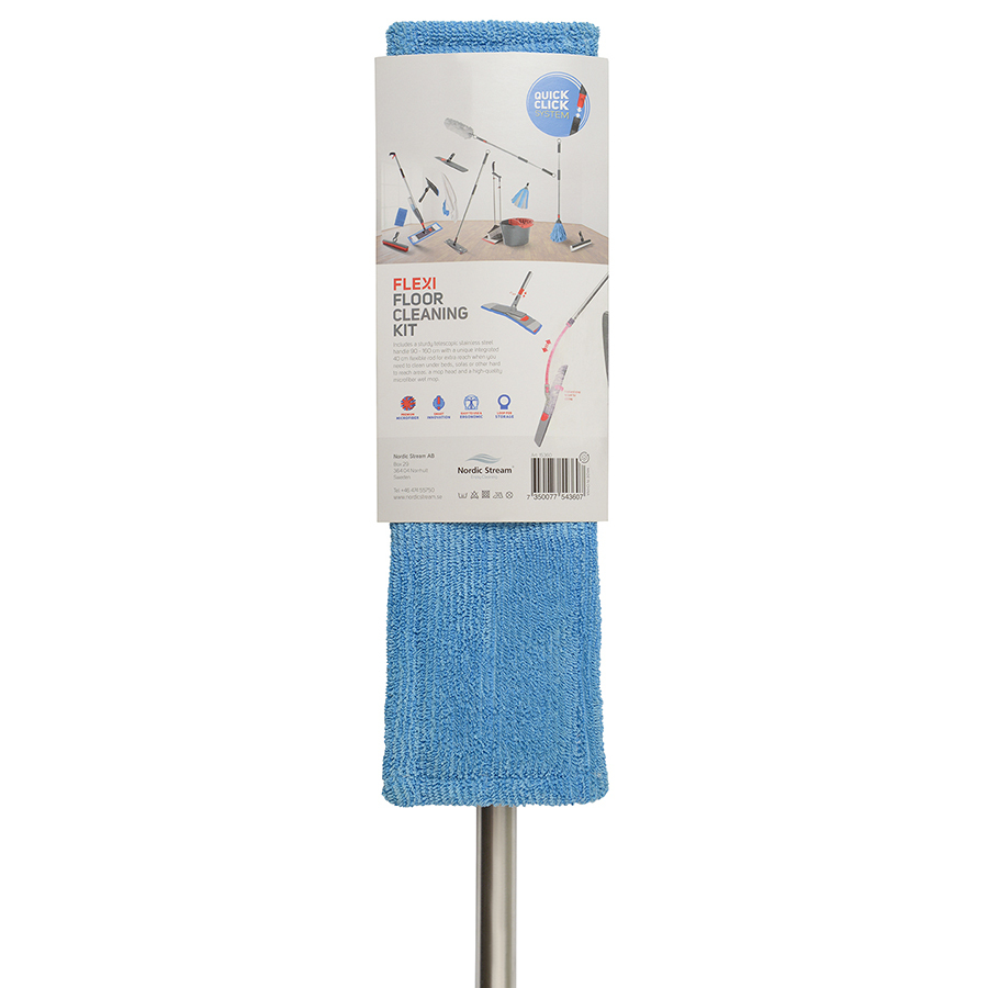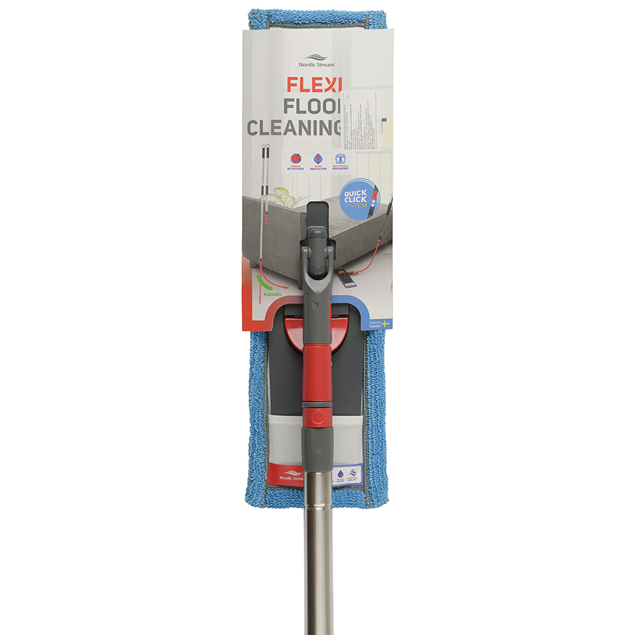 Швабра для мытья пола с телескопической ручкой и гибкой штангой – современный и эффективный аксессуар для дома. Она идеально подходит для влажной уборки напольных поверхностей из дерева, стекла, пластика или кафеля, обеспечивает доступ в труднодоступные места. Высококачественная микрофибра состоит на 88% из полиэстера и на 12% из полиамида. Материал быстро поглощает воду, пыль и жидкие загрязнения. Не оставляет разводов и следов. Швабра дополнена телескопической ручкой из нержавеющей стали длиной 160 см. Гибкая штанга 40 см облегчает уборку в труднодоступных местах. Благодаря эргономичной петле швабру удобно хранить, подвесив на крючок или специальную вешалку Nordic Stream. В комплект входят: телескопическая ручка 160 см, основание для швабры, гибкая штанга 40 см и насадка-тряпка из микрофибры.