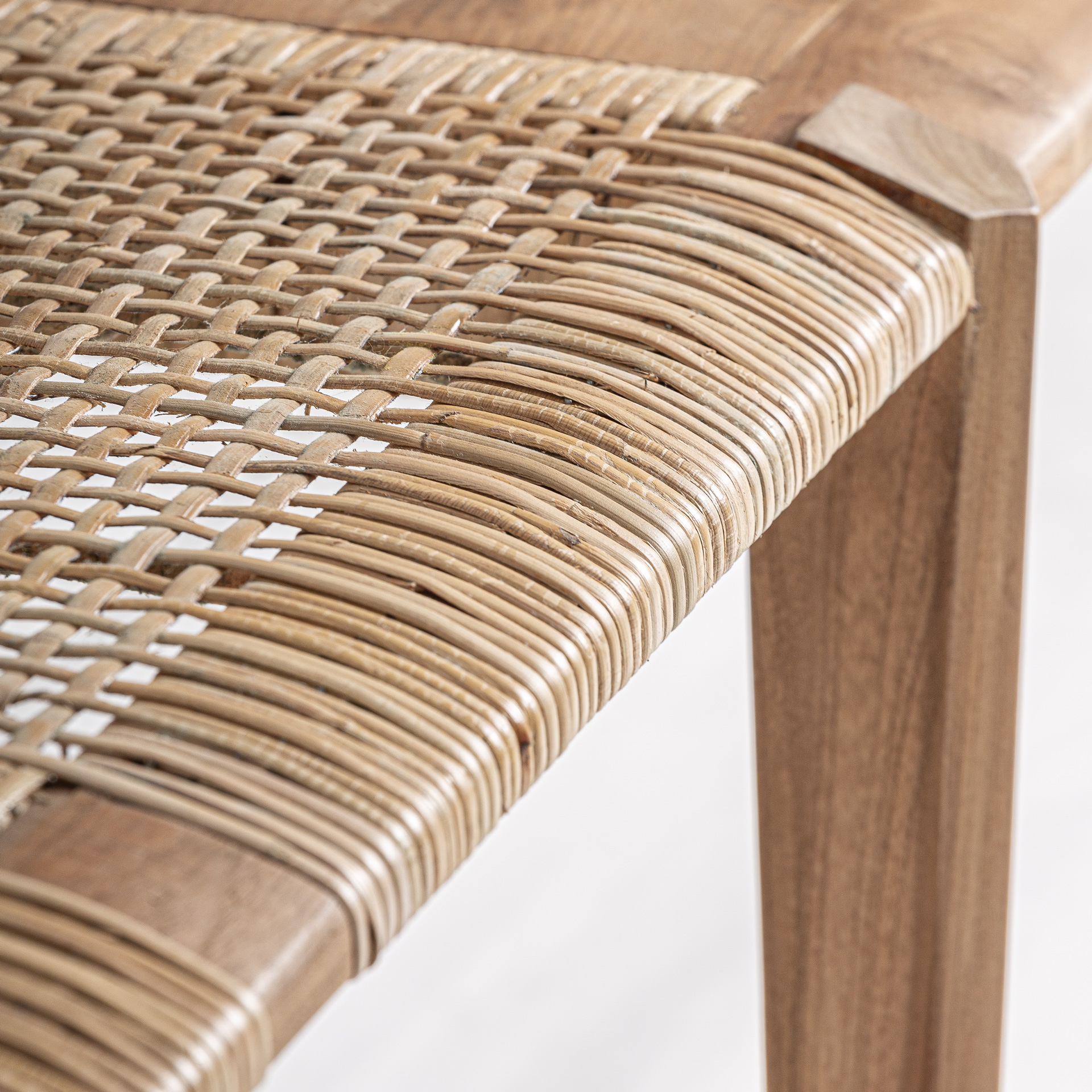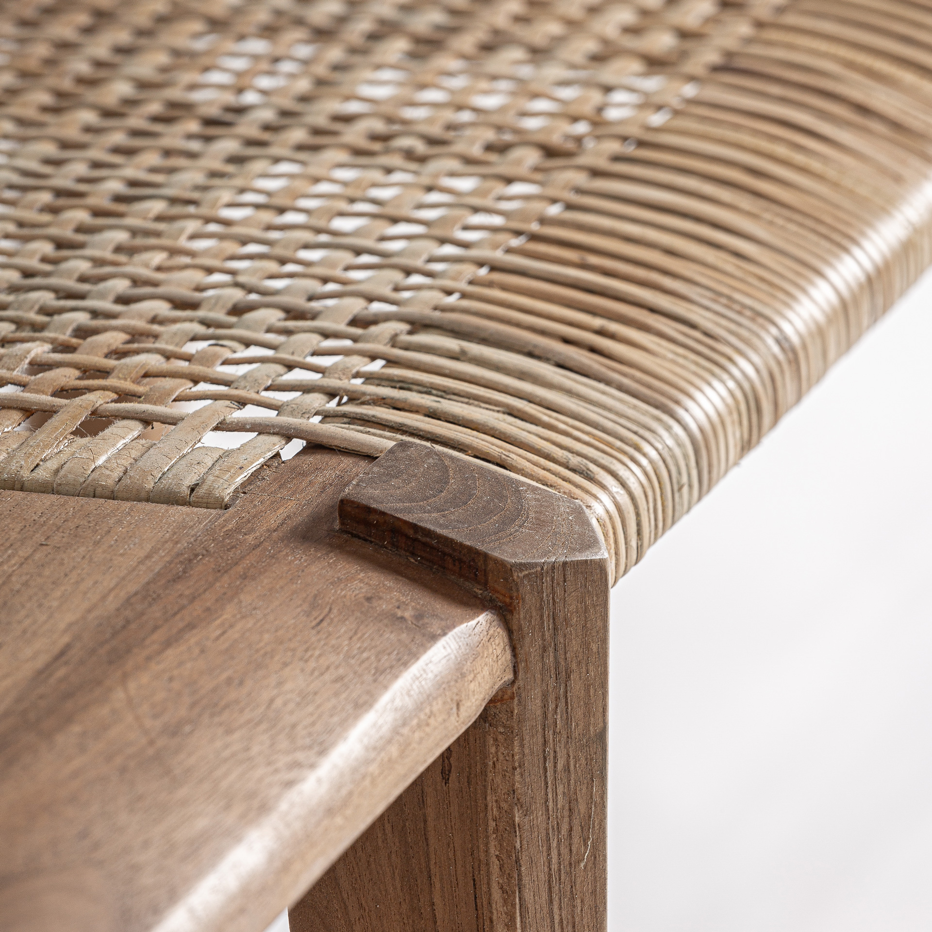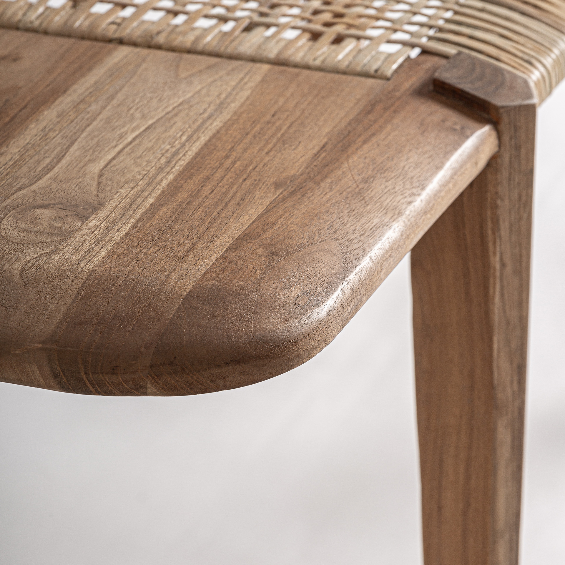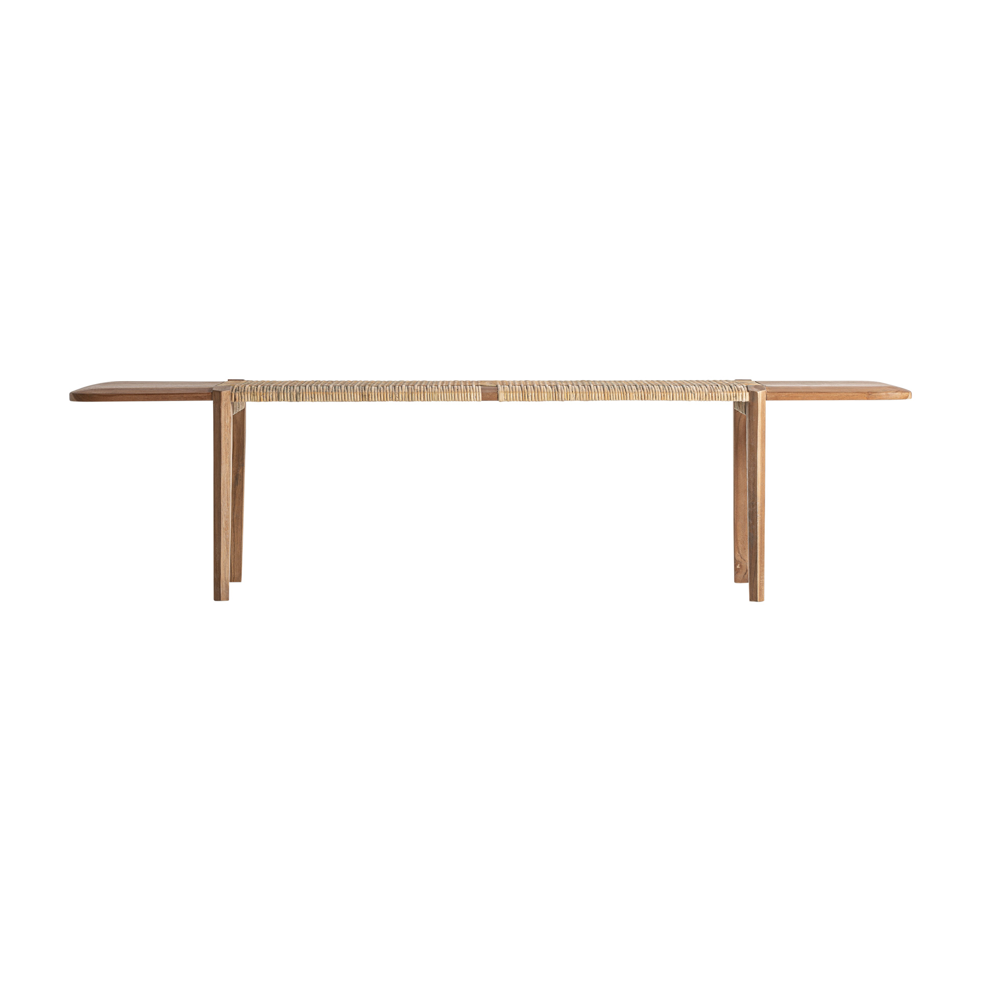 Скамейка в стиле бохо, изготовленная из тикового дерева коричневого цвета.