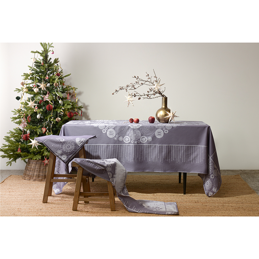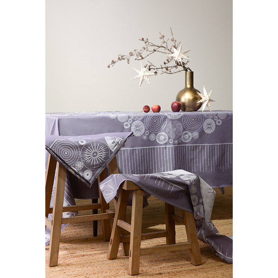 Скатерть из хлопка насыщенного фиолетово-серого цвета с жаккардовым рисунком Ледяные узоры из коллекции New Year Essential украсит праздничный новогодний стол и внесет разнообразие в повседневную зимнюю сервировку. Изделие в оригинальном дизайне органично впишется в любой современный интерьер. Модель выполнена из плотного хлопка - прочного материала, который хорошо впитывает влагу и не деформируется после множества стирок.