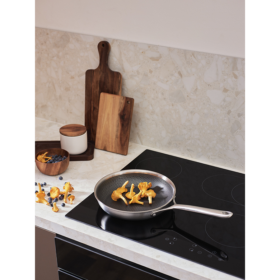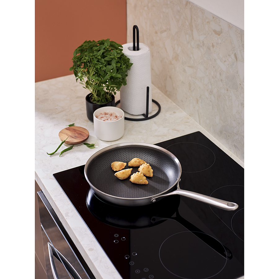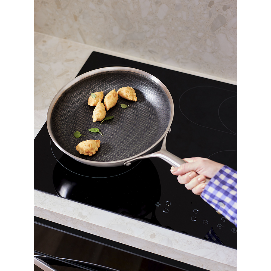 Сковорода 3Ply Etalon, изготовленная по инновационной технологии TRI-PLY, с уникальным структурным дном Honeycomb с лазерным напылением поможет получить настоящее удовольствие от готовки и позволит почувствовать себя настоящим шеф-поваром на собственной кухне.