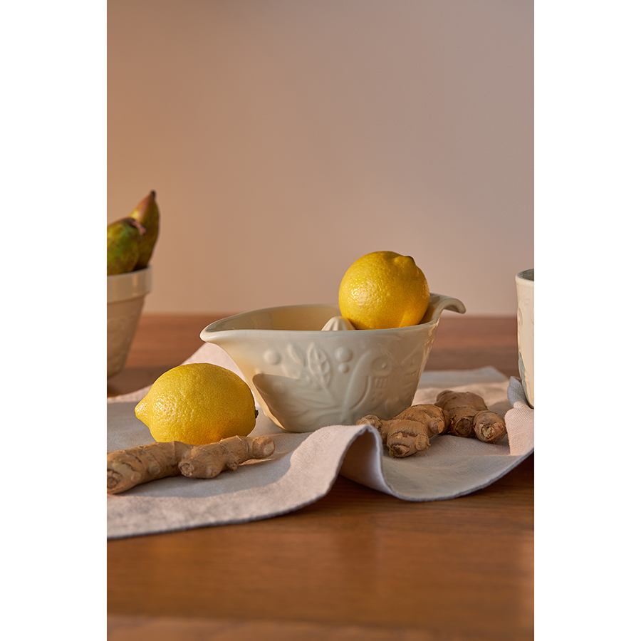 Соковыжималка для цитрусовых из коллекции Birds of Paradise – качественная посуда из экологичной каменной керамики, которая облегчает процесс готовки и делает интерьер любой кухни более уютным. Отличительной особенностью серии является объемный узор природной тематики, добавляющий дизайну элегантные нотки. Благодаря высокой прочности и устойчивости материала к износу изделие не теряет привлекательный внешний вид на протяжении всего срока службы. Покрытие глазурью облегчает уход, обеспечивает декоративность и дополнительную защиту от внешних воздействий. Соковыжималка имеет широкую чашу со специальным “носиком” для аккуратного переливания сока и ручкой для удобного захвата. Она проста в применении и легко очищается после использования.