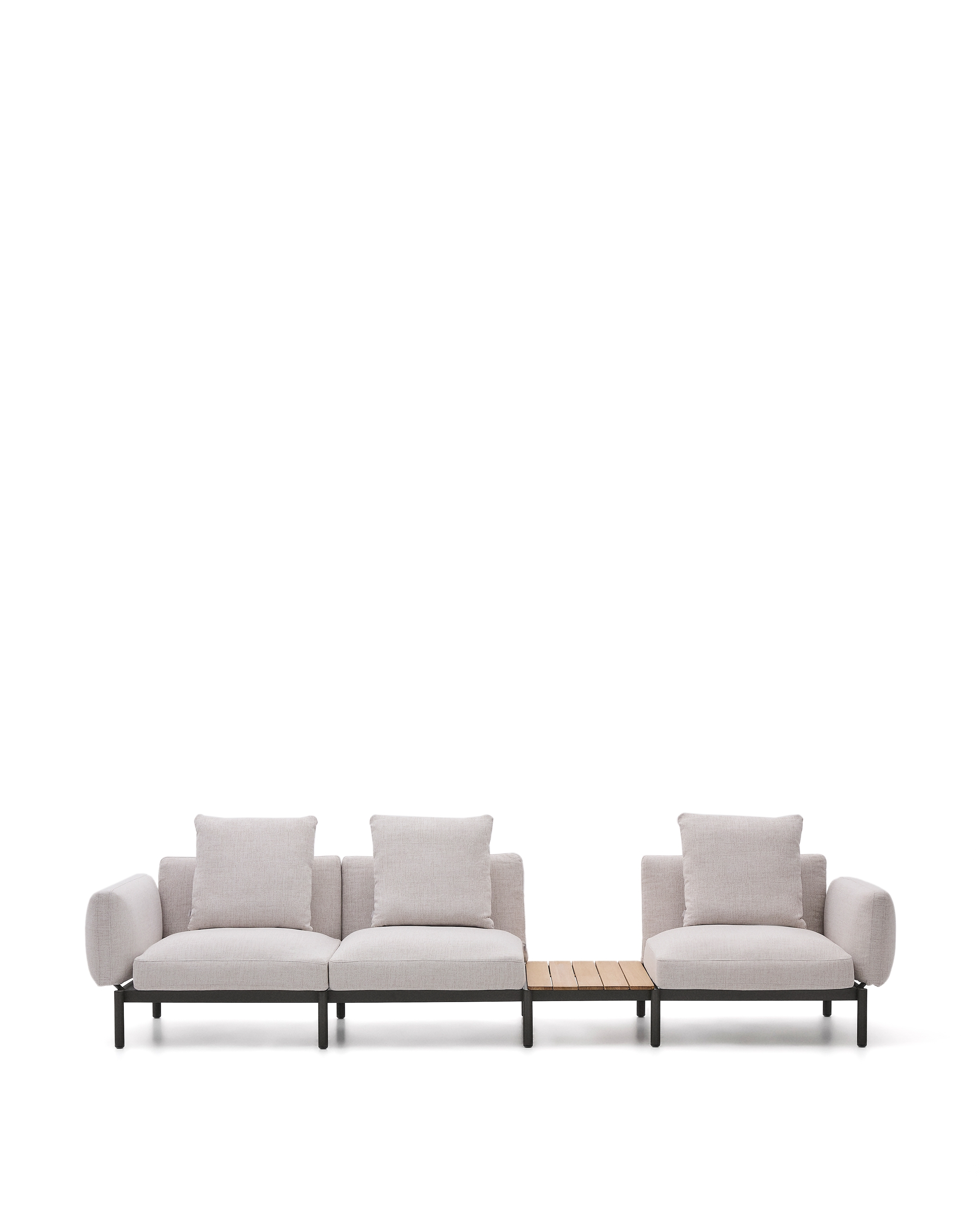 Sorells — это гораздо больше, чем просто модульный диван, это ключевой элемент для преобразования вашего пространства на открытом воздухе с аутентичным стилем и комфортом. Разработанный эксклюзивно Made Studio для Kave Home, Sorells сочетает в себе универсальность модульной конструкции с прочностью высококачественных материалов. Его алюминиевая структура, которая легкая и устойчива к ржавчине, коррозии и ультрафиолетовому излучению, обеспечивает исключительную долговечность на открытом воздухе. К этому добавляется бежевая обивка, призванная привнести изысканность и тепло.