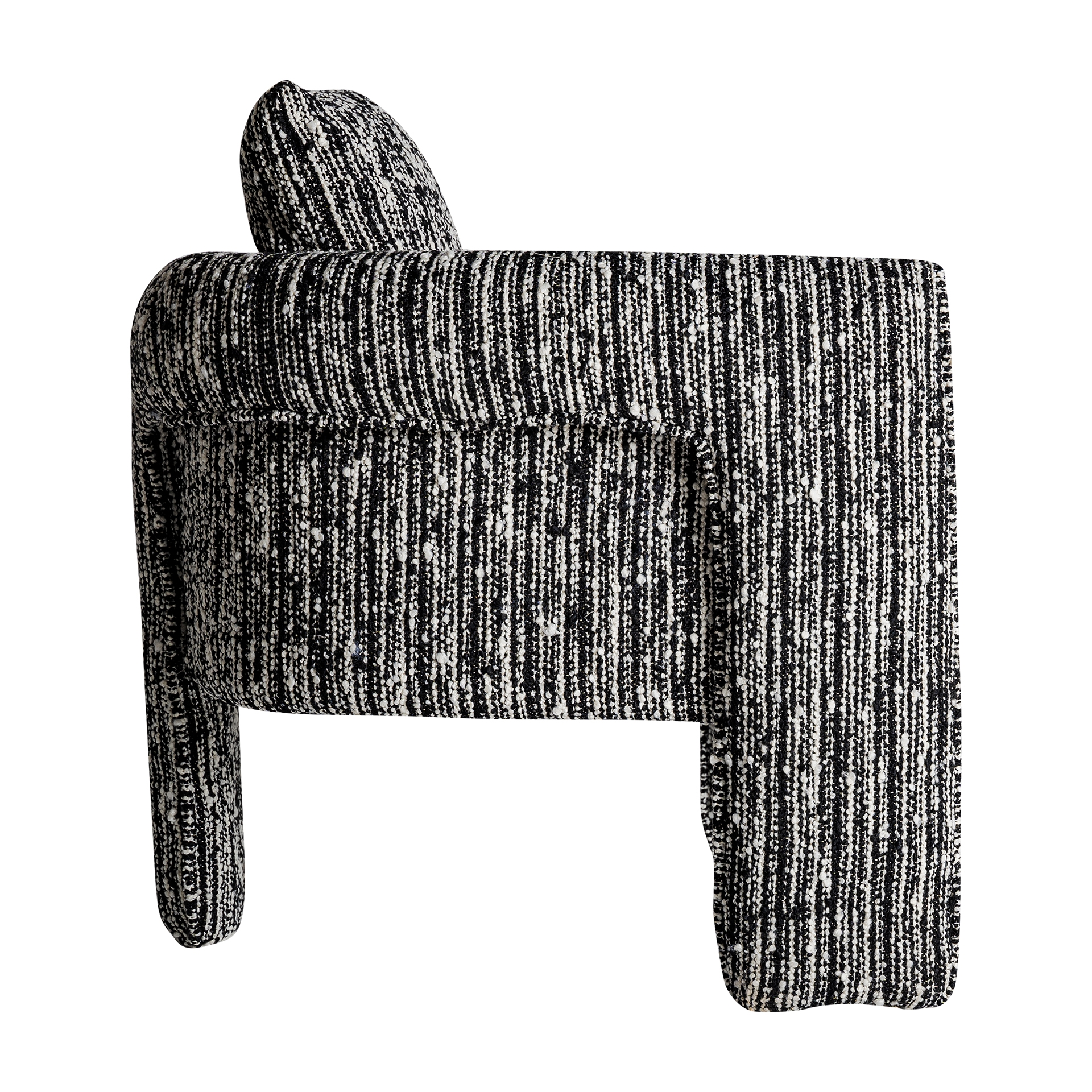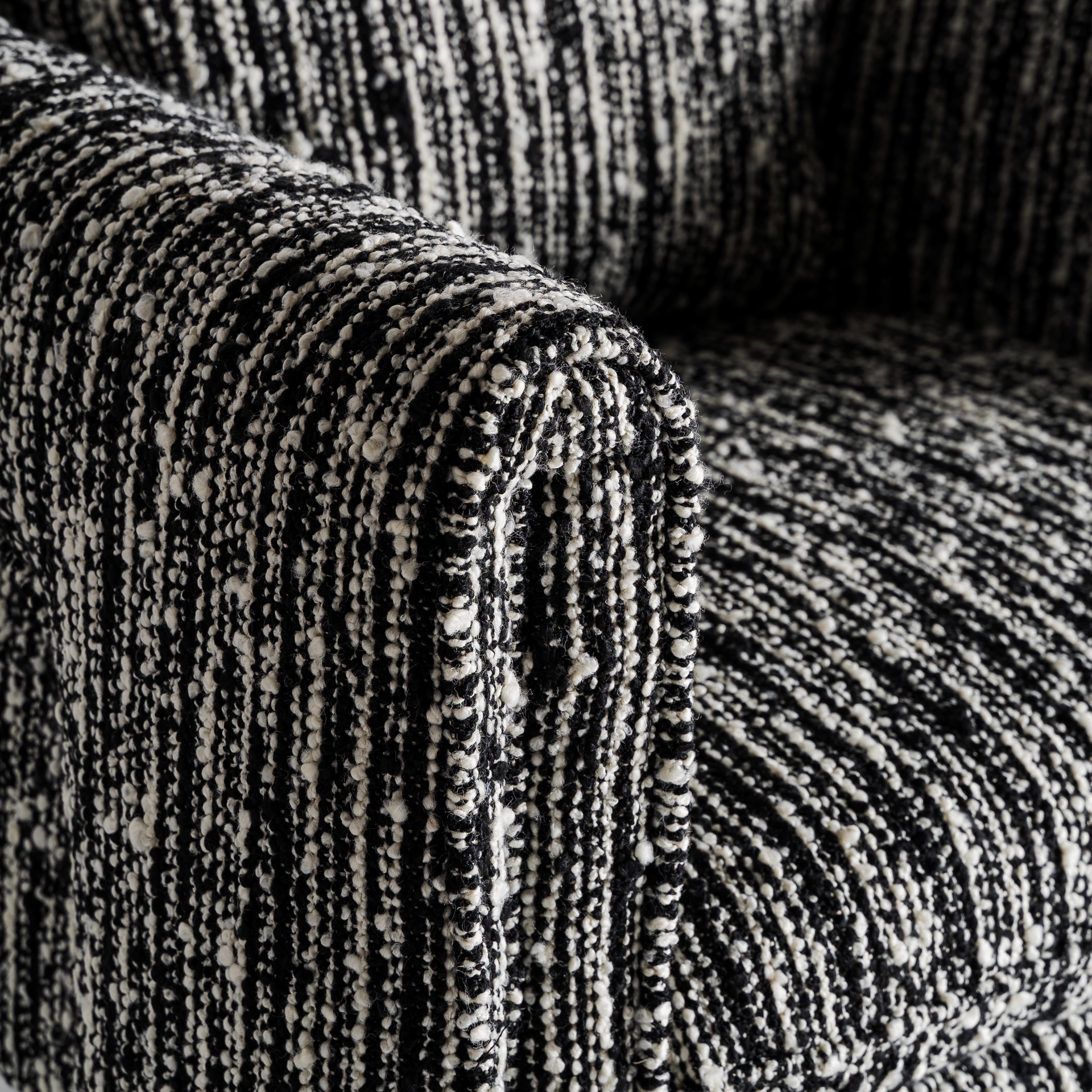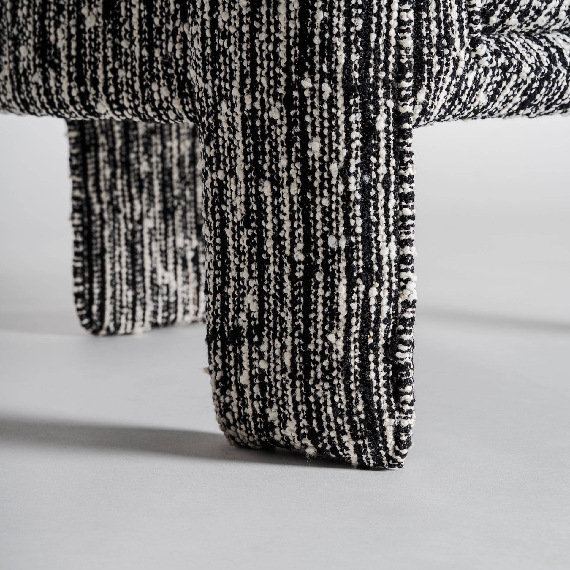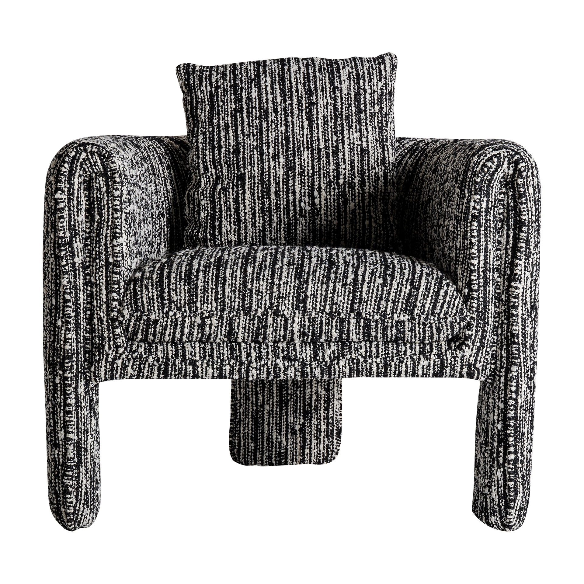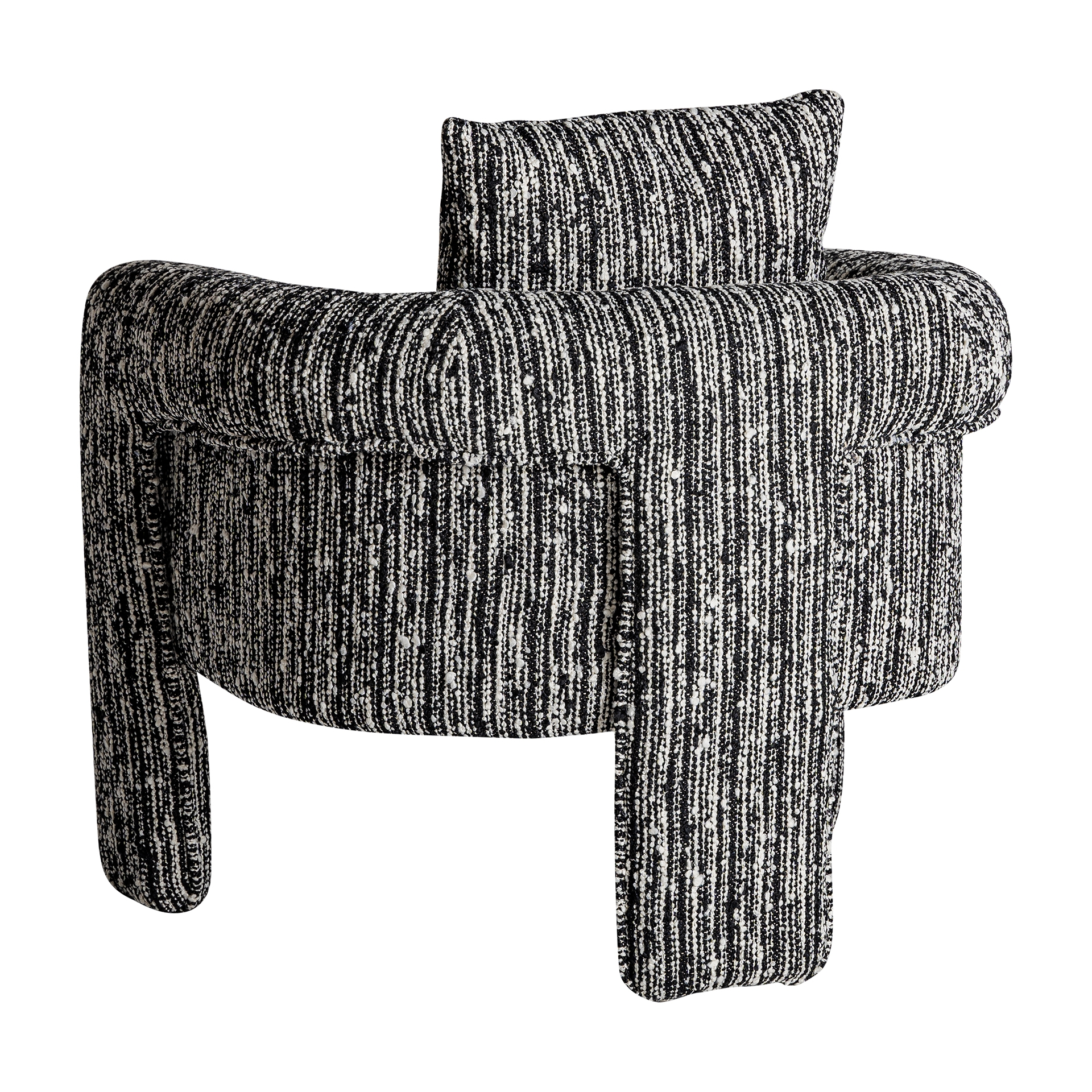 Современное кресло Kostov, изготовленное из черного полиэстера с пятнистой отделкой в сочетании с сосной и фанерой.