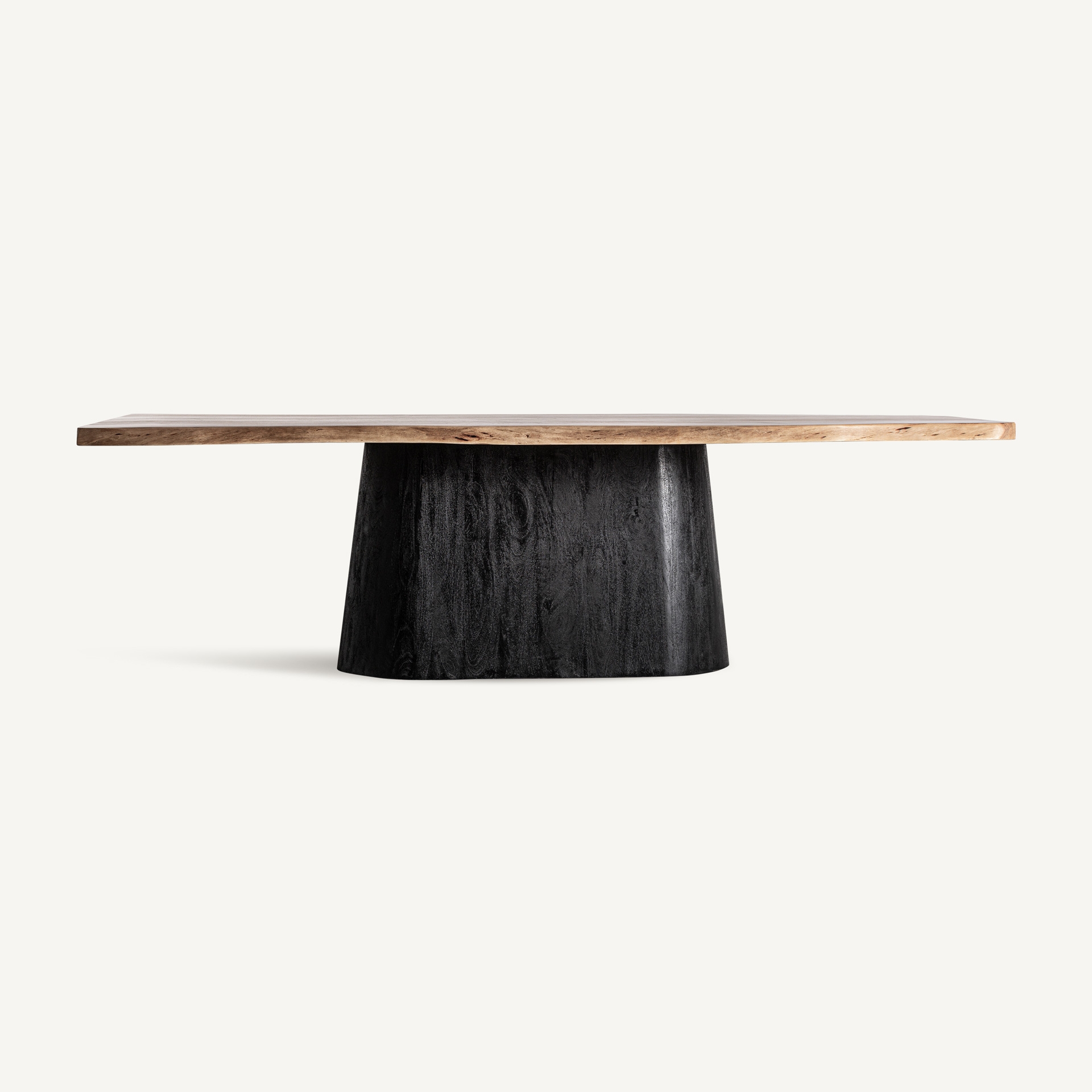 Современный обеденный стол Knaith, изготовленный из чёрного мангового дерева в сочетании с коричневой акацией. Разборный.
