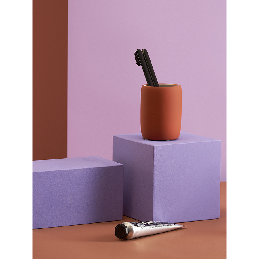 Стакан для зубных щеток Flow – идеальное сочетание стильного дизайна и практичности, которое вы искали. Он не только станет прекрасным дополнением вашей ванной комнаты, но и превратит ежедневный уход за собой в приятный ритуал. Теплый терракотовый оттенок делает аксессуар ярким акцентом интерьера, а покрытие софт-тач дарит тактильный комфорт.