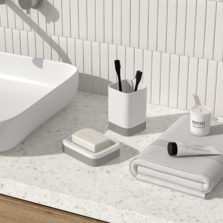 Коллекция для ванной комнаты Tyer – удачное сочетание практичности, функциональности и элегантной простоты. Аксессуары выполнены в бело-серой цветовой гамме, что придает им современный вид и делает их идеальным выбором для любого интерьера.