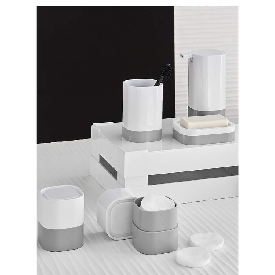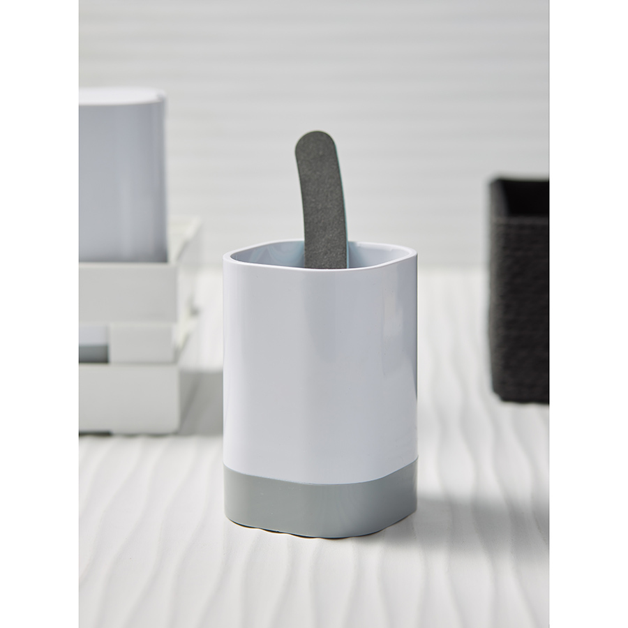 Материалы: пластик, акрил. Размеры: 7,6х7,6х11,3 см. Объем: 470 мл. Цвет: белый/серый.