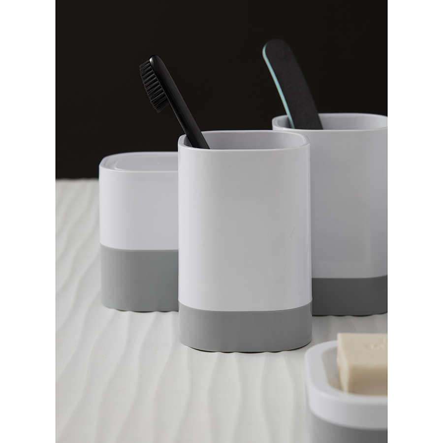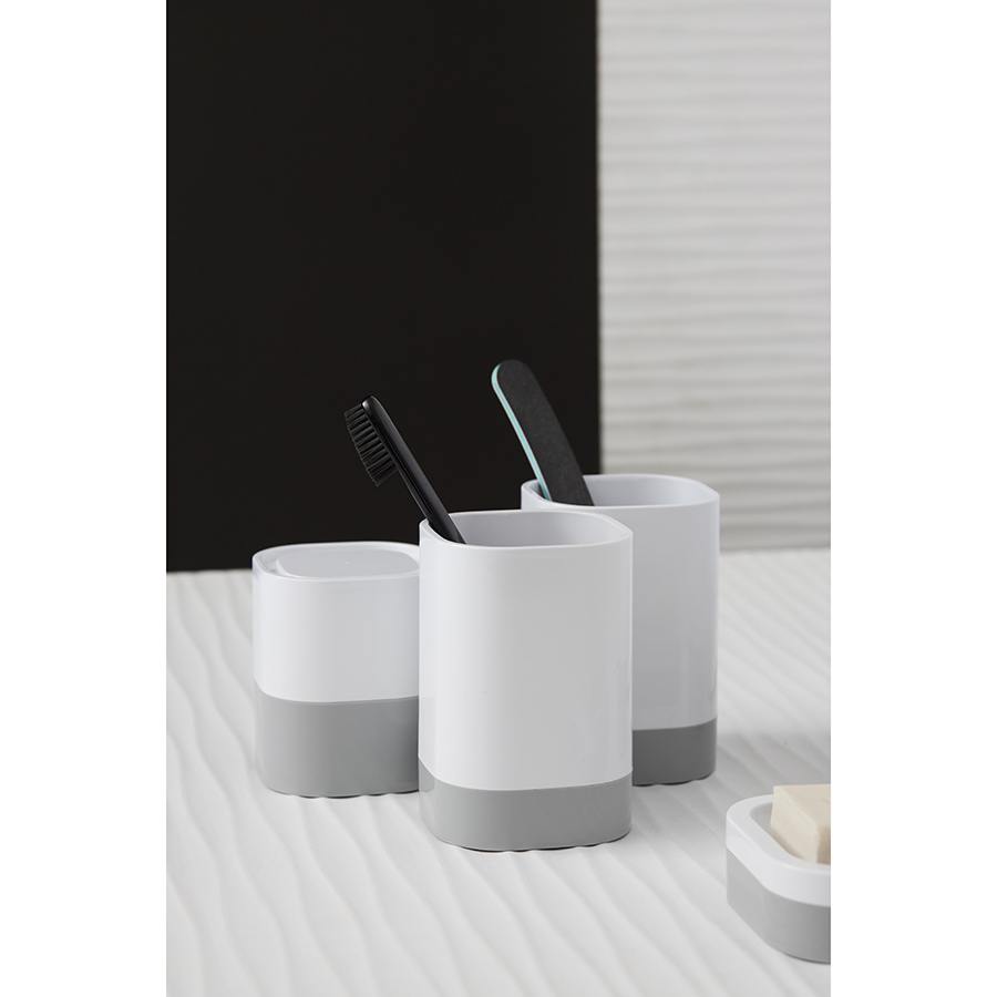 Стакан для зубных щеток Tyer выполнен из высококачественного пластика и акрила, что обеспечивает ему долговечность и возможность эксплуатации в условиях повышенной влажности. Пластиковые элементы обладают превосходной устойчивостью к механическим повреждениям, а акриловые – придают изделию деликатный блеск, делая дизайн привлекательным. Компактный аксессуар не занимает много места на раковине и полке.