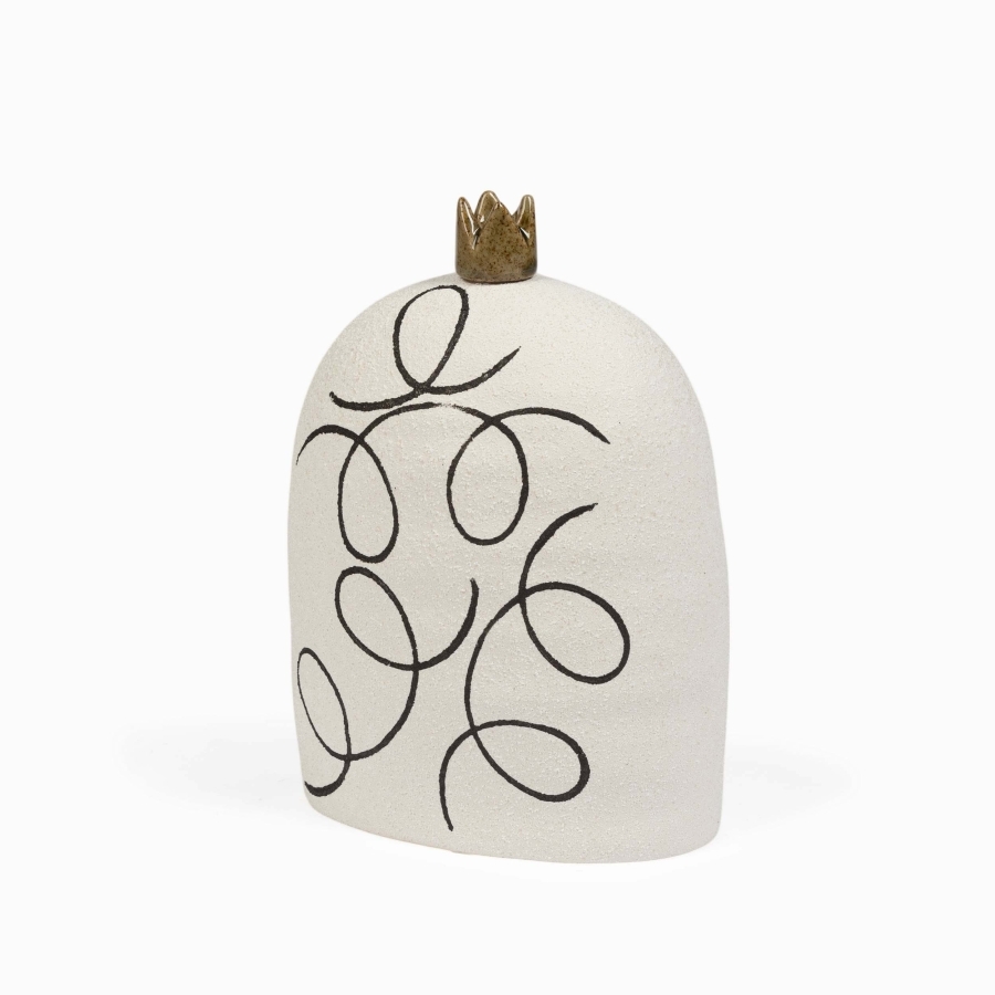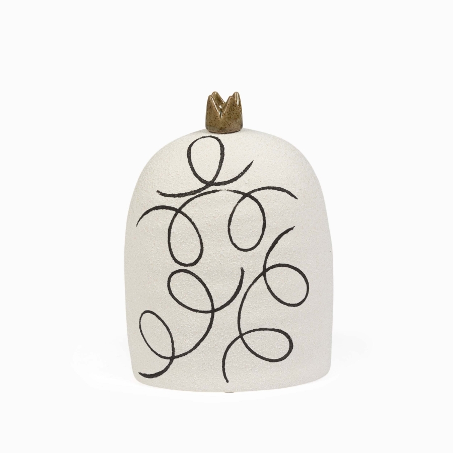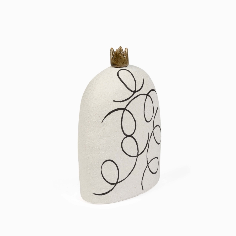 Статуэтка из коллекции Circle Crown — это симпатичный и стильный элемент декора, выполненный из керамики в нежном белом цвете с золотыми и черными акцентами.