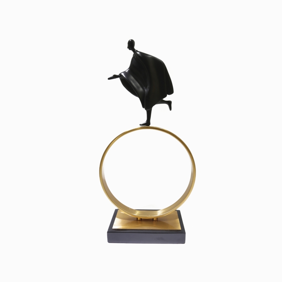 Статуэтка With Hoop 3 — это элегантный и стильный элемент декора, который станет прекрасным акцентом в вашем интерьере. Фигурка человека так изящно и легко передвигается по золотому кольцу, модная динамика в вашем интерьере!
