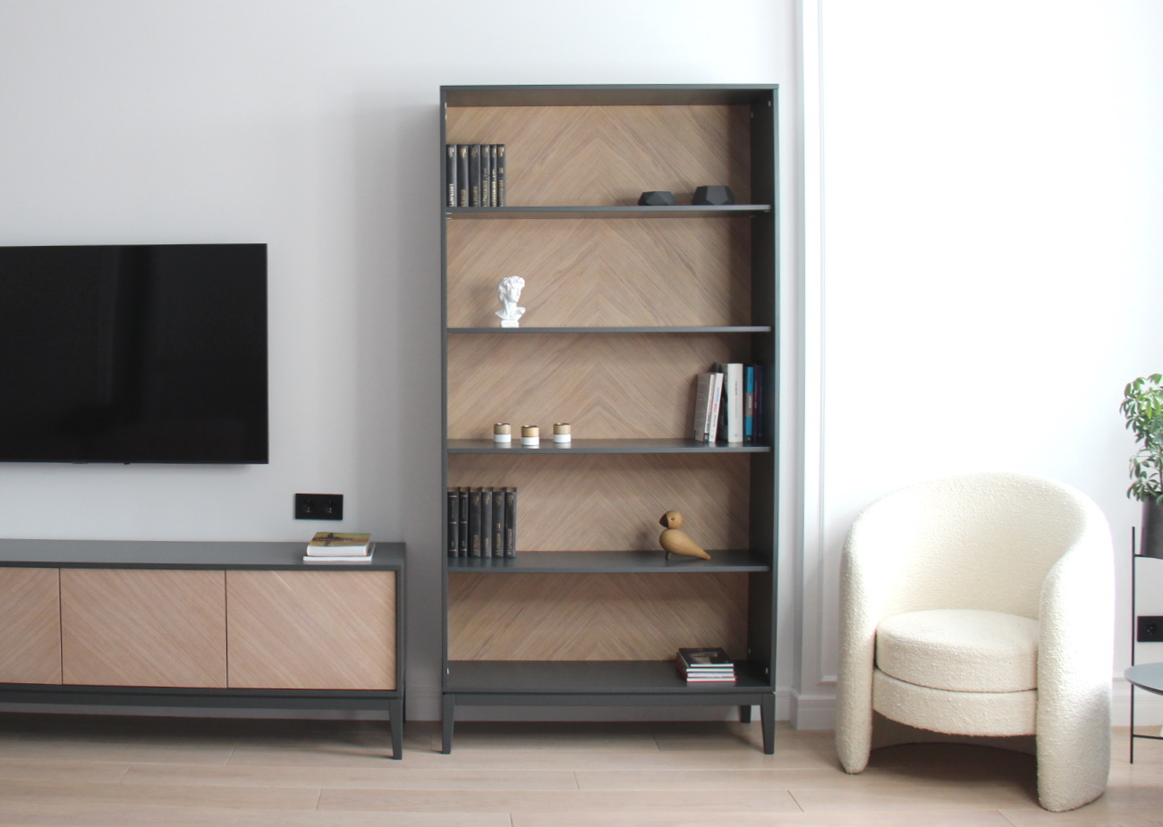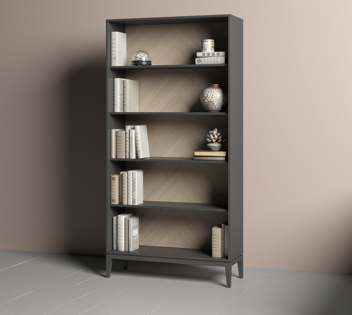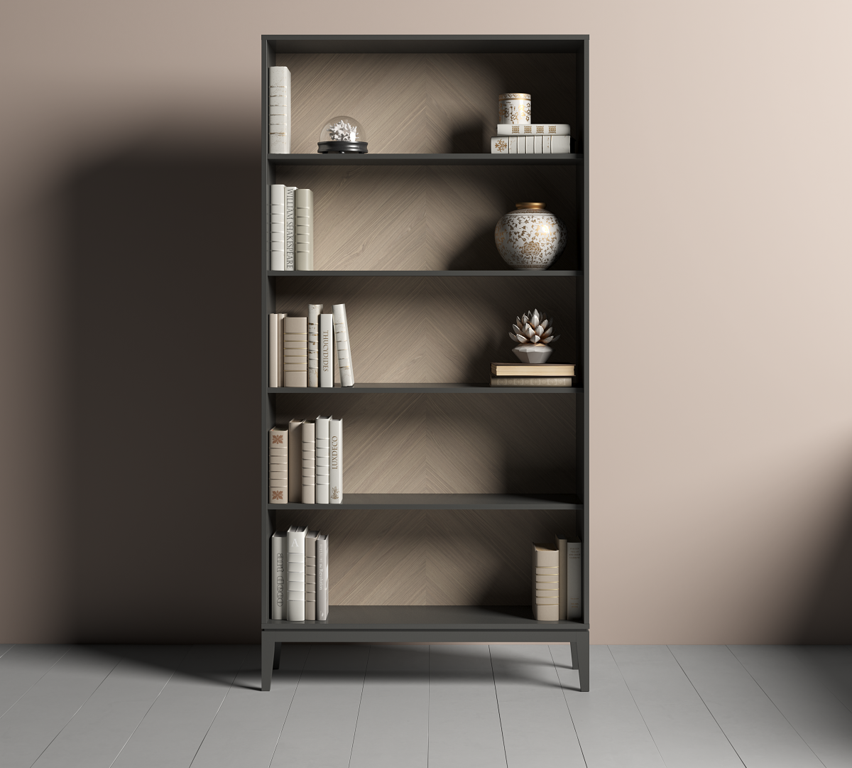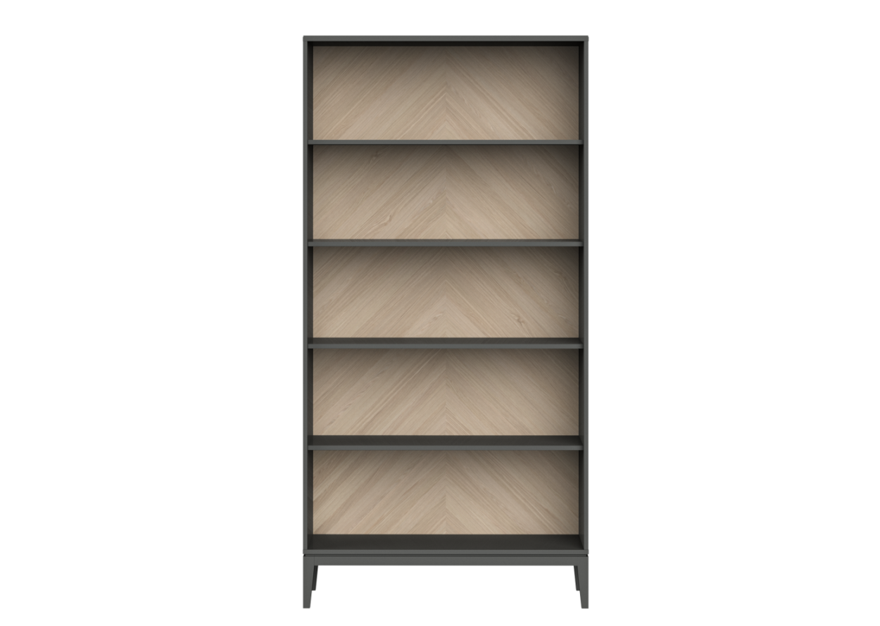 Стеллаж Fjord размер L Высота: 200 см Ширина: 100 см Глубина: 36 см Основание: массива бука Корпус: МДФ под эмалью Фасады: шпон дуба