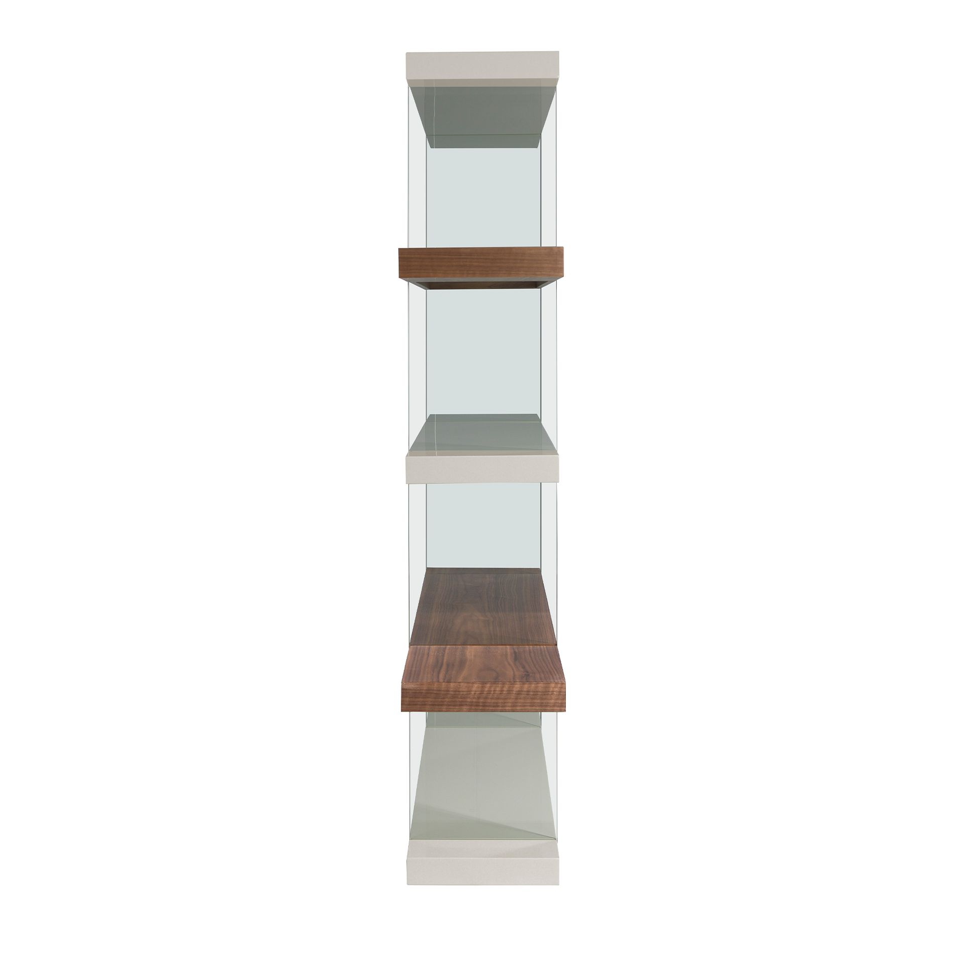 Стеллаж HS-SC-001 из одноименной коллекции от испанской фабрики Angel Cerda — грамотное решение для разделения пространства. Стеллаж моментально приковывает к себе внимание. Практически незаметный стеклянный каркас создает ощущение невесомости полок — они словно повисли в воздухе. Их массивный вид говорит о прочности, но при этом, он не утяжеляет конструкцию. Этот предмет мебели создан таким образом, что удачно встанет, как посреди комнаты (для разделения пространства), так и возле стены. Цветовая палитра универсальна и будет отлично гармонировать со всеми базовыми цветами, которые используются в европейском модерне (бежевый, белый, древесный и др.). Изделие полностью соответствует современному стилю испанской мебели — оно эргономичное, стильное, создано из качественных материалов. Конструкция одновременно простая и оригинальная. Пять полок, расположенных на расстоянии 38 см друг от друга, удерживают две вертикальные стенки из закаленного стекла. Они цельные и буквально врезаны в каждую панель. Нижняя полка заменяет опору (ножки), на которой стоит стеллаж. Полки расположены ассиметрично. Материал изготовления полок — ореховый шпон и мдф, окрашенный в белый глянцевый цвет. Размеры — 140 см × 33 см × 180 см (ширина, глубина, высота). Вес — 80 кг. Изделие поставляется в разобранном виде в двух коробках весом 35 и 45 кг соответственно. В комплект включен крепеж и инструкция по сборке.