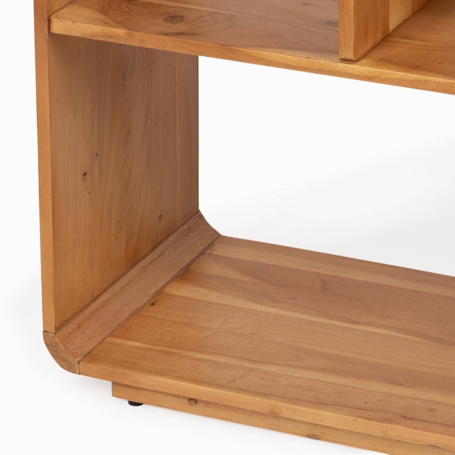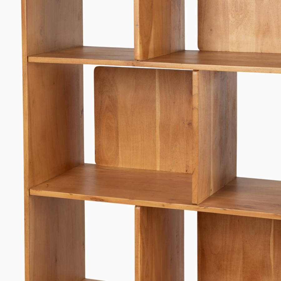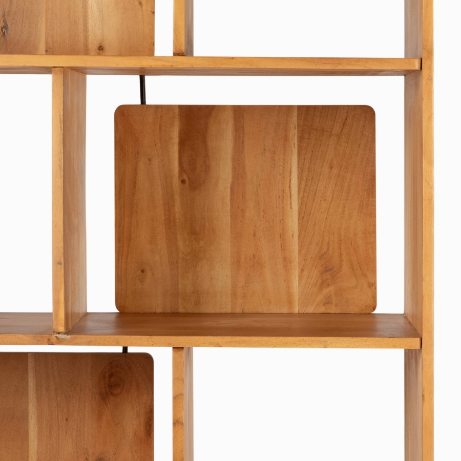 Стеллаж изготовлен из массива акации, известного своей прочностью и долговечностью.