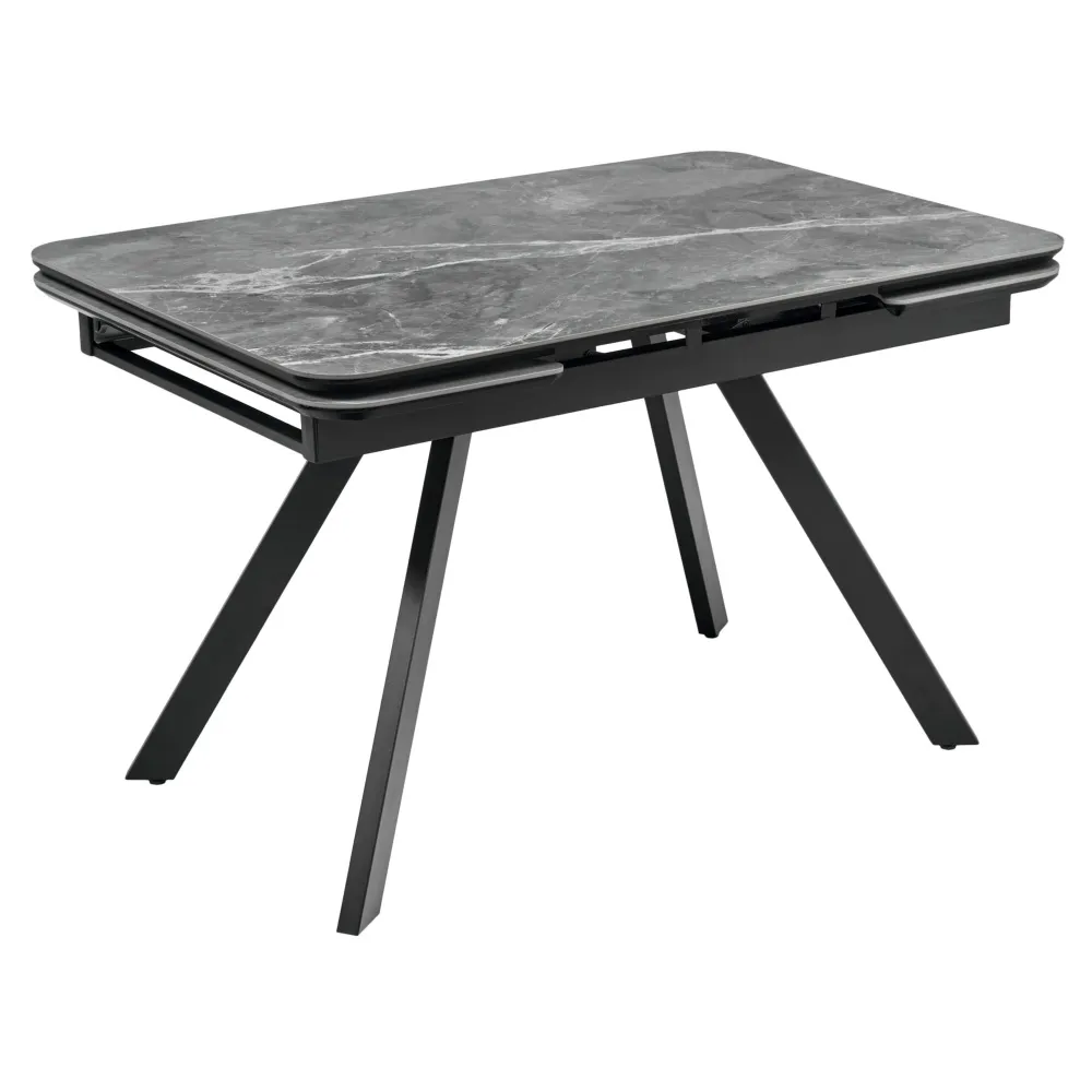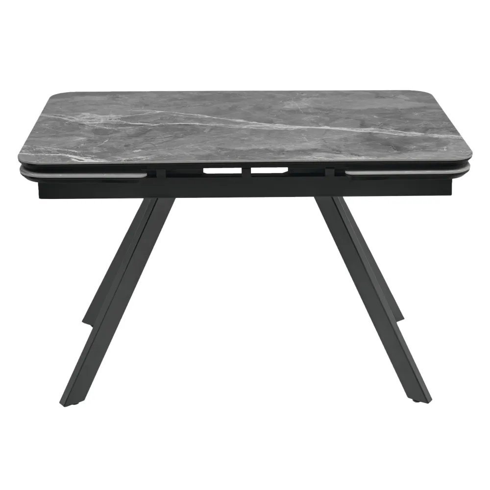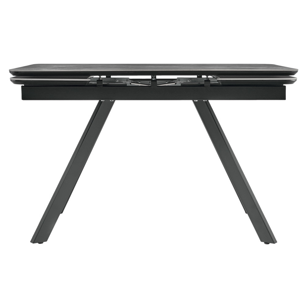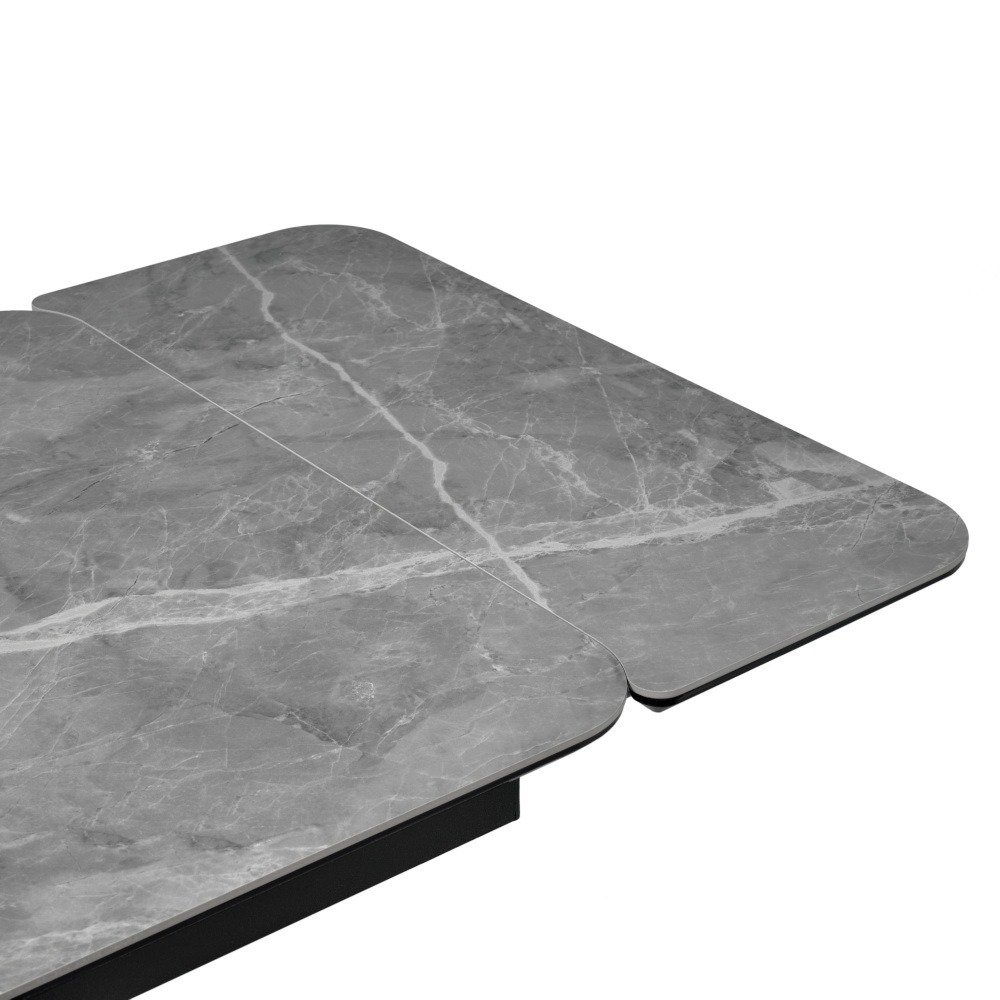 Обеденный стол с синхронно-подъемным механизмом раздвижения (центральная вставка). Столешница из тонкой керамики. Этот материал, долговечный и устойчивый к механическим воздействиям, передает структуру и микрорельеф натурального камня. Опоры выполнены из стали, устойчивы и при этом визуально легкие, окрашены в благородный матовый черный цвет. Размер: 120-184x80x75см. Толщина столешницы 25 мм. Стол поставляется в разобранном виде (2 коробки).