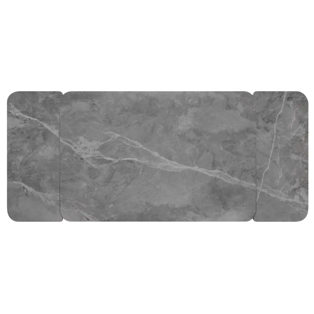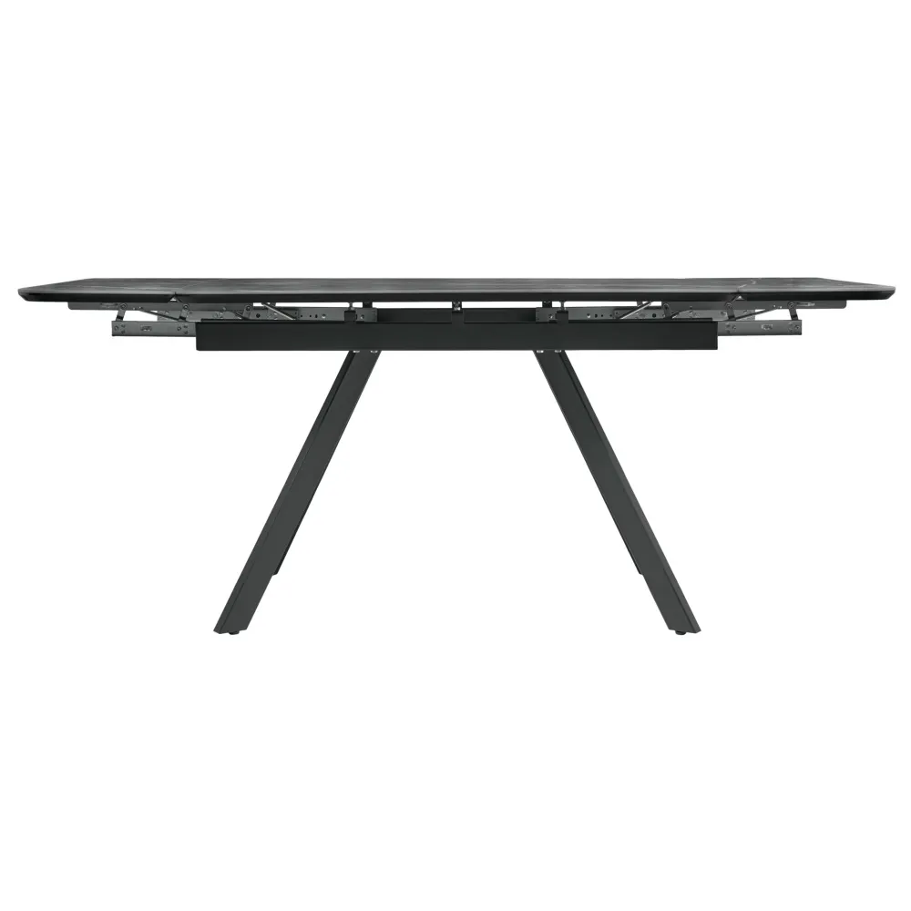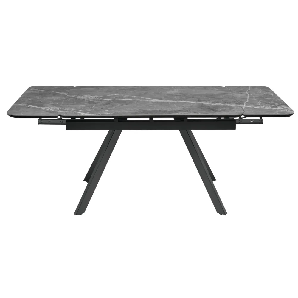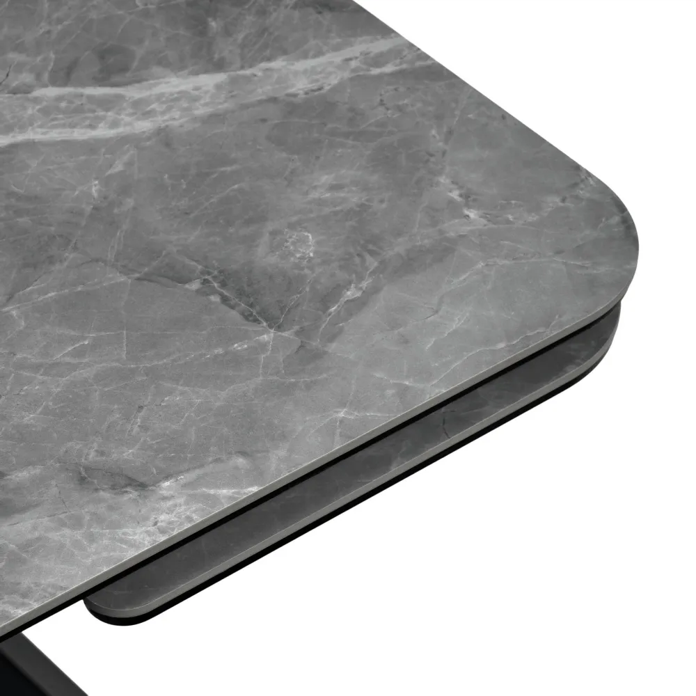 Обеденный стол с синхронно-подъемным механизмом раздвижения (центральная вставка). Столешница из тонкой керамики. Этот материал, долговечный и устойчивый к механическим воздействиям, передает структуру и микрорельеф натурального камня. Опоры выполнены из стали, устойчивы и при этом визуально легкие, окрашены в благородный матовый черный цвет. Размер: 120-184x80x75см. Толщина столешницы 25 мм. Стол поставляется в разобранном виде (2 коробки).